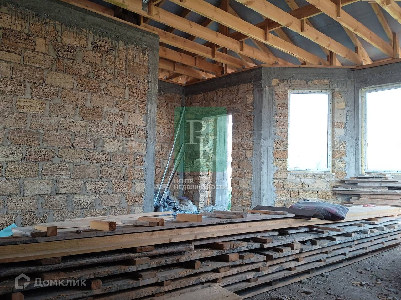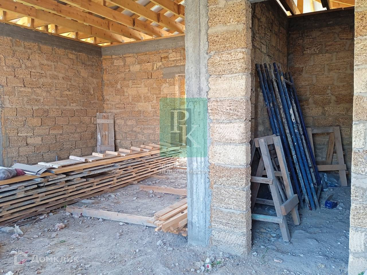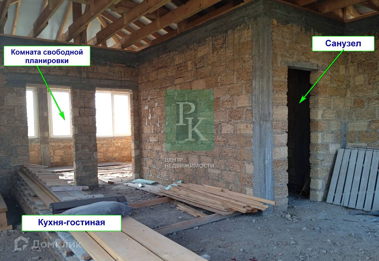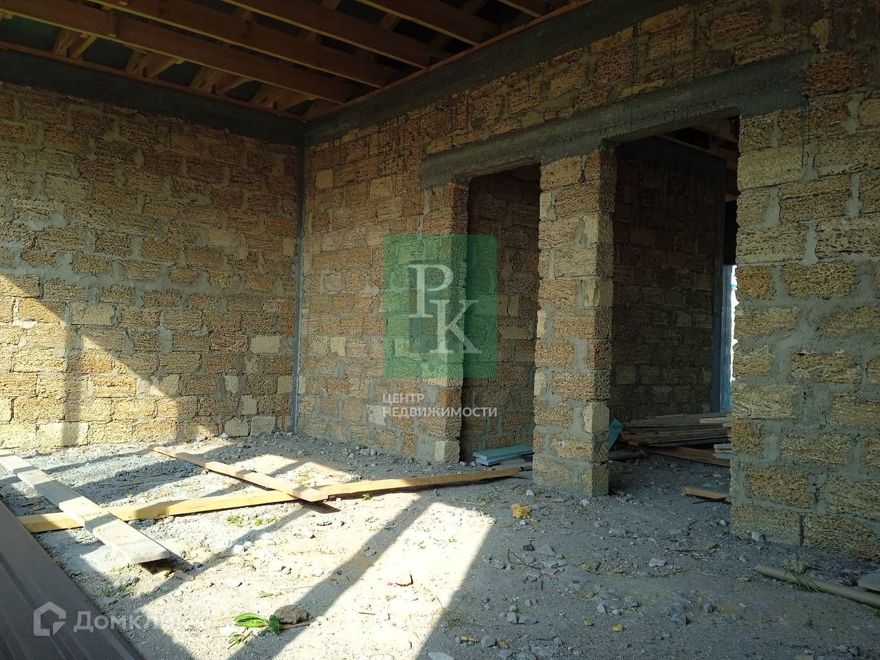 Дом находится на этапе черновой отделки, построен из природного камня «ракушняк», а участок имеет небольшой уклон.