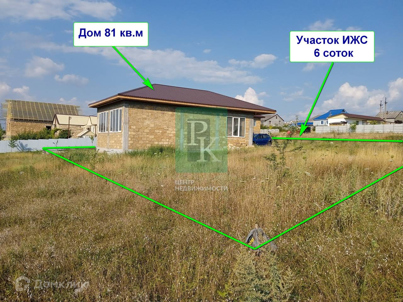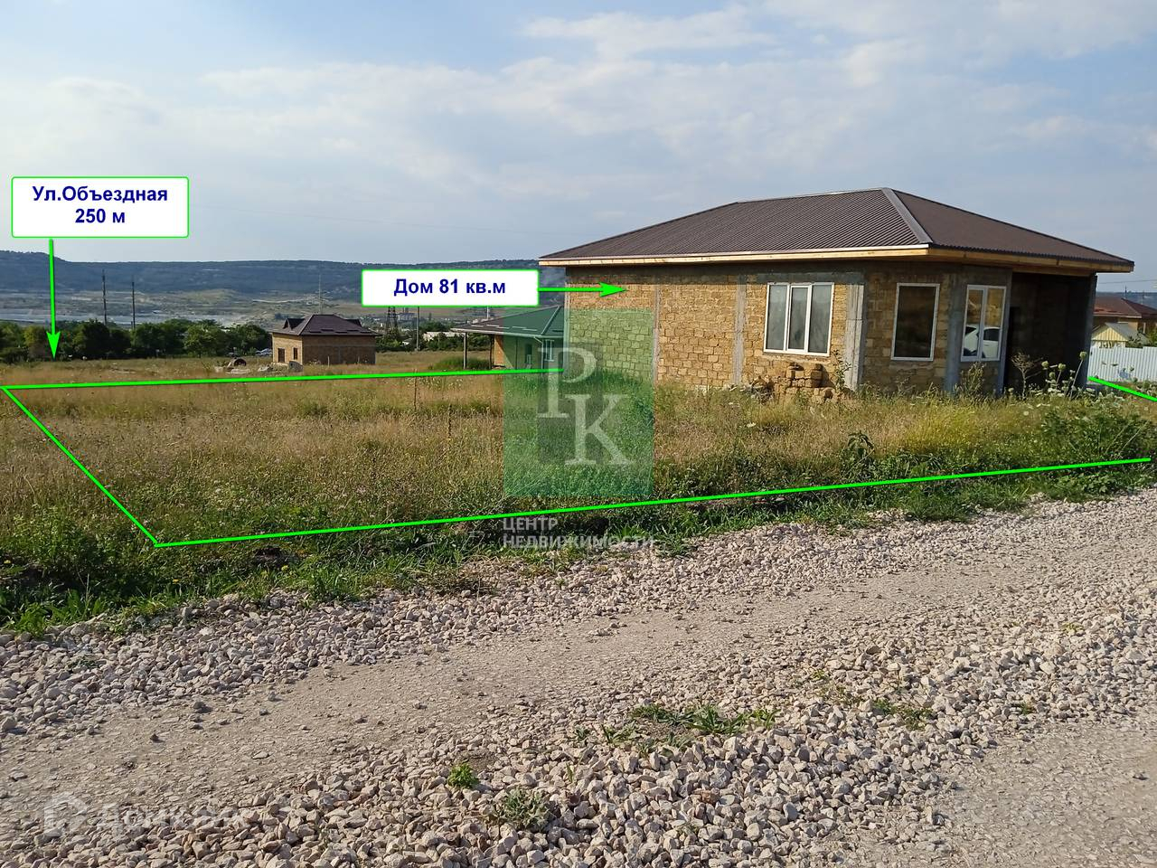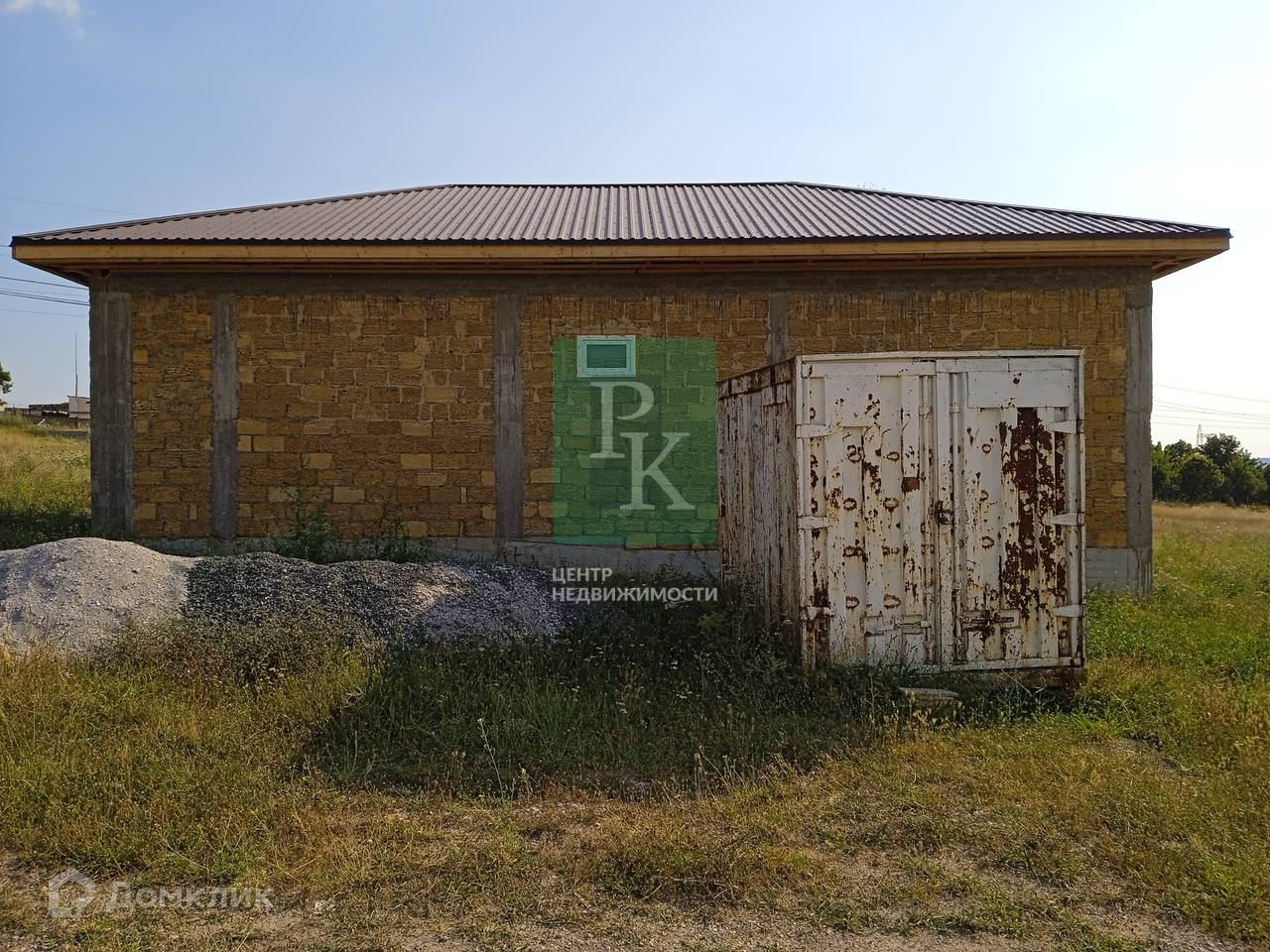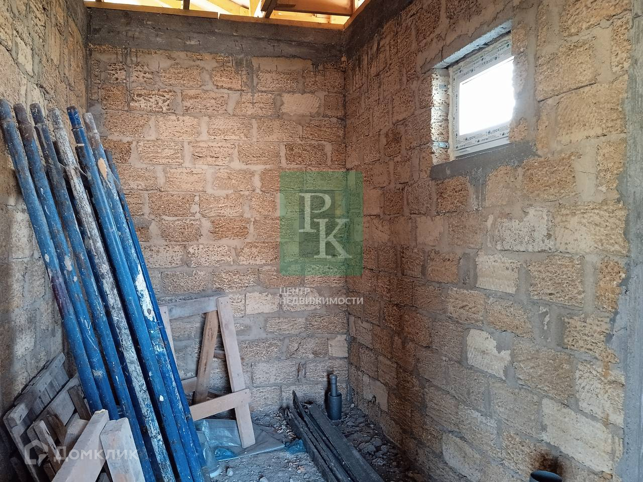 Дом находится на этапе черновой отделки, построен из природного камня «ракушняк», а участок имеет небольшой уклон.
