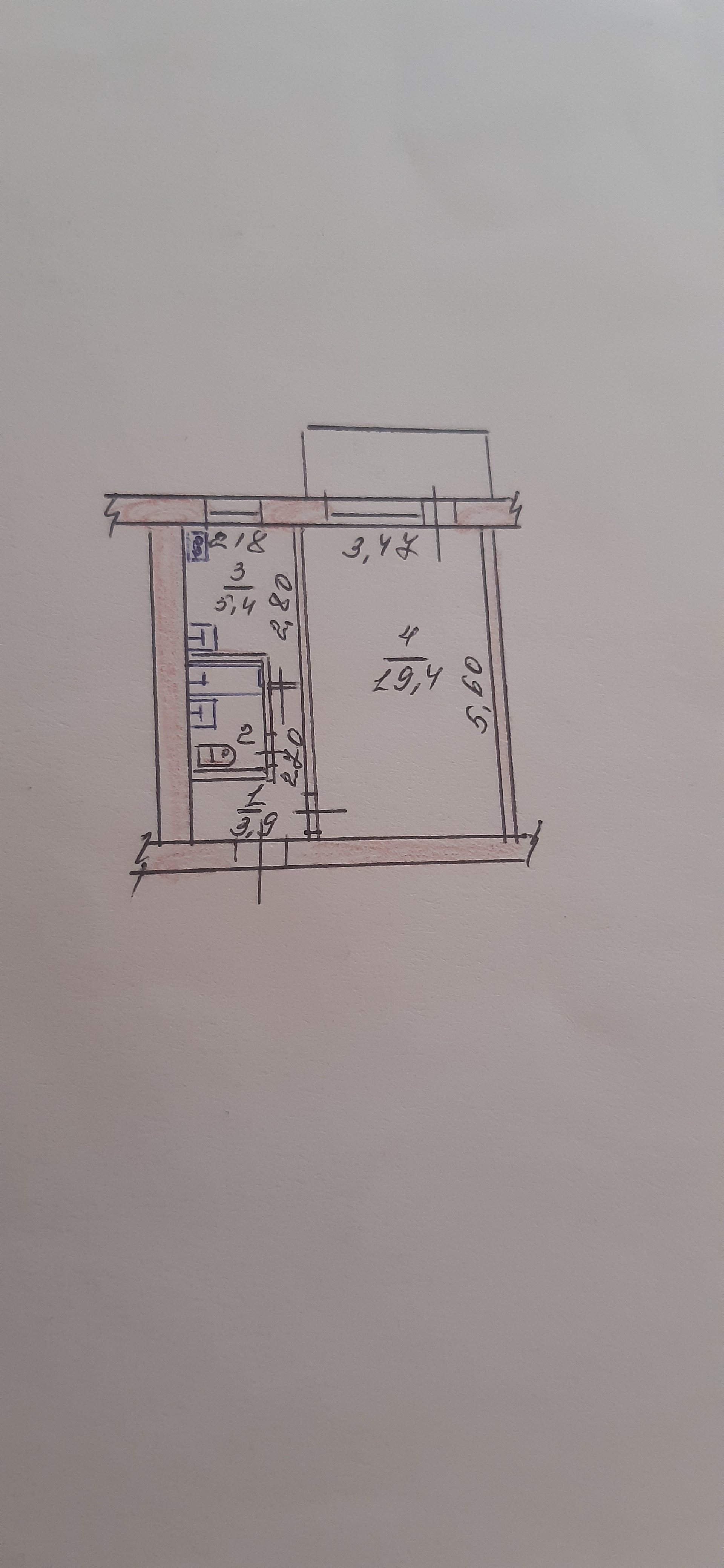Балкон, лоджия 1 балкон