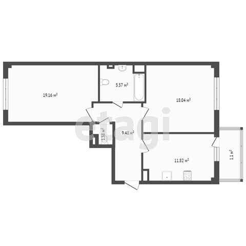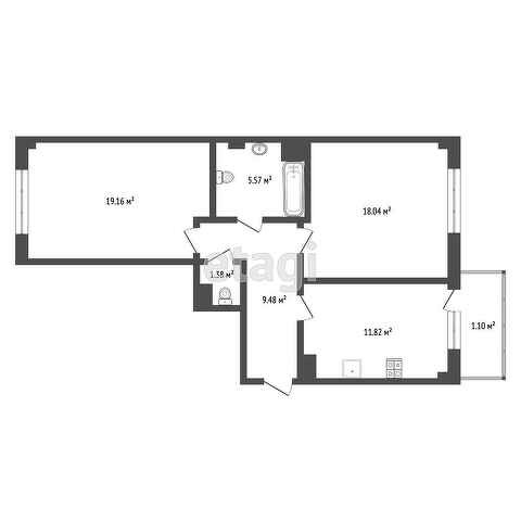 Общая площадь 54 м2