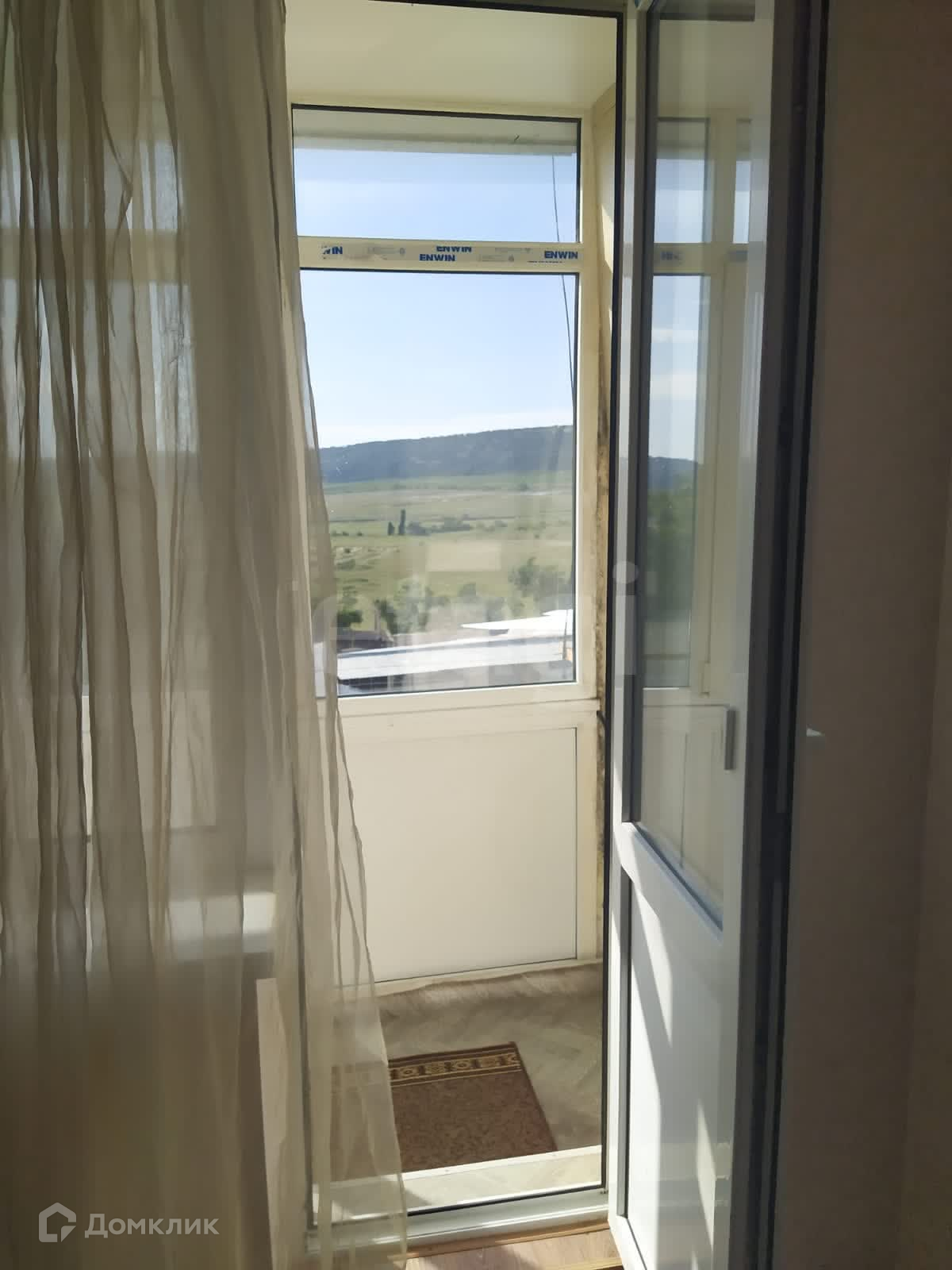 Комната с большим застекленным балконом и прекрасным видом на горы.