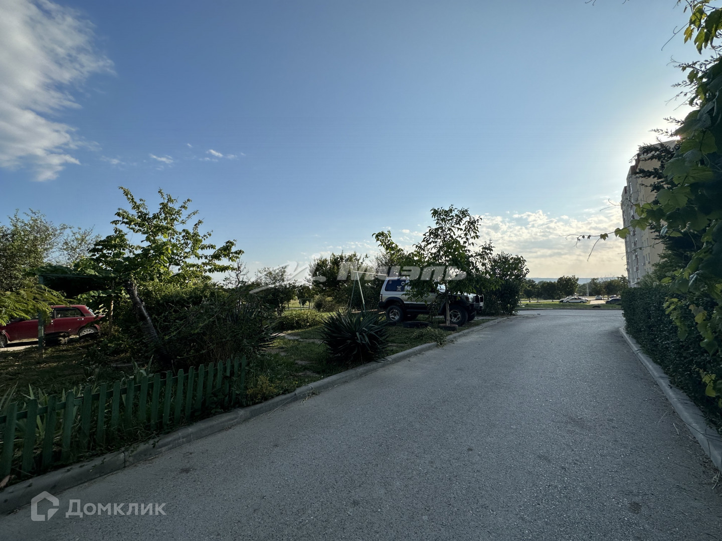 Во дворе детская площадка, открытая автопарковка.