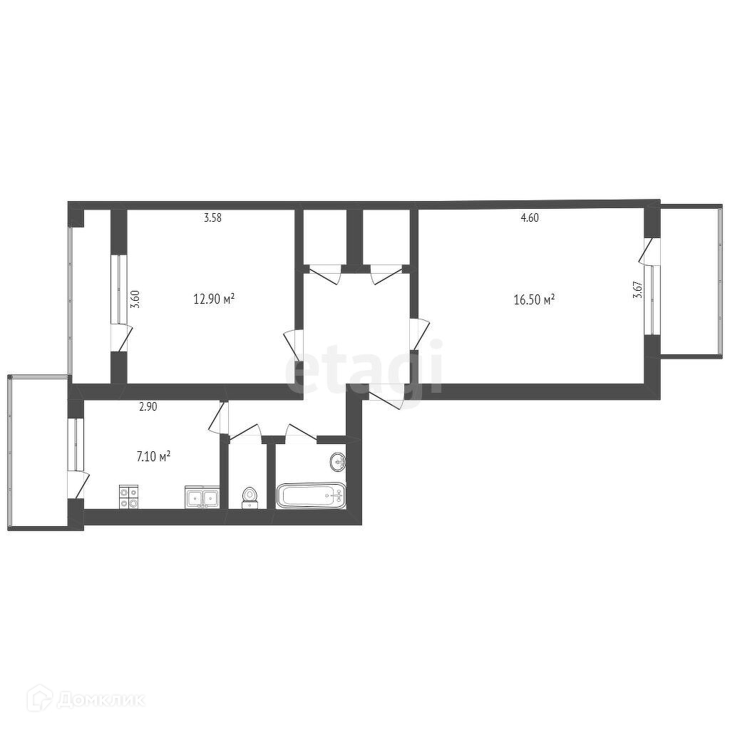 Общая площадь 51.9 м2