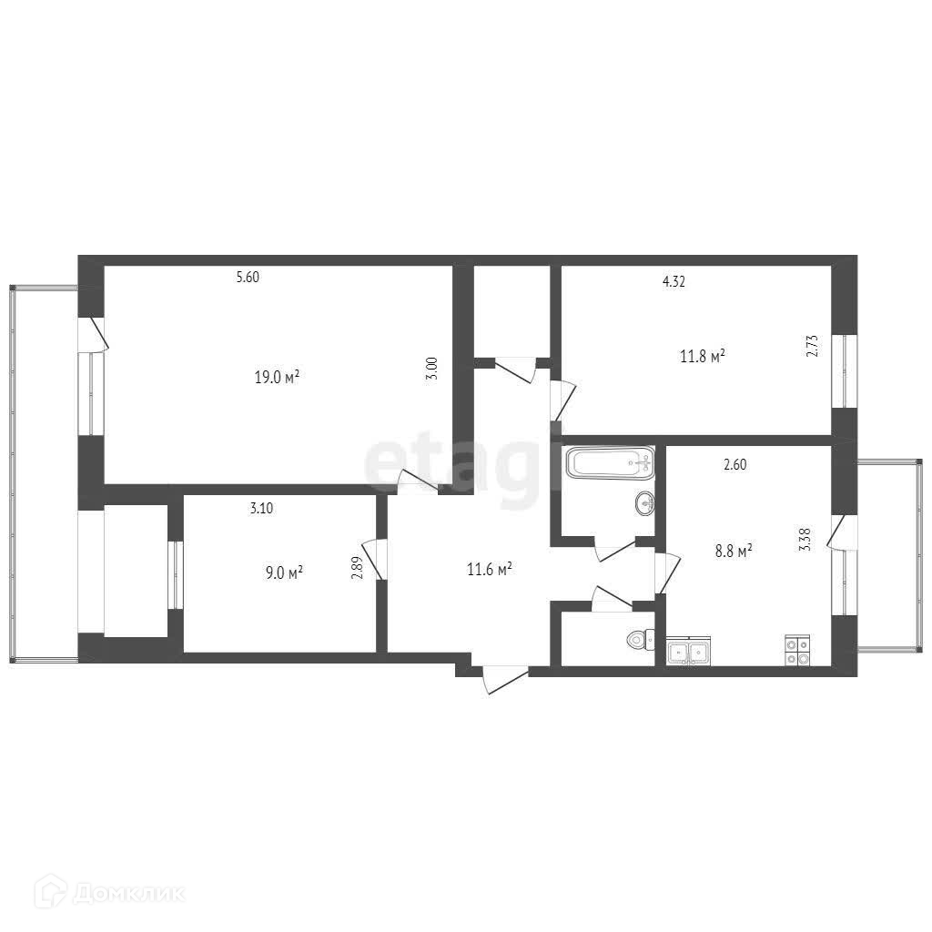 Общая площадь 70.3 м2