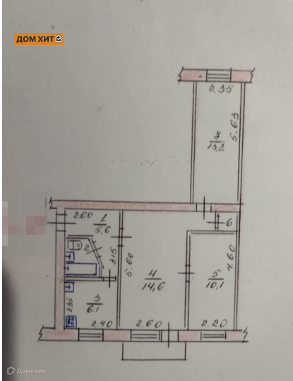 Общая площадь 54.4 м2