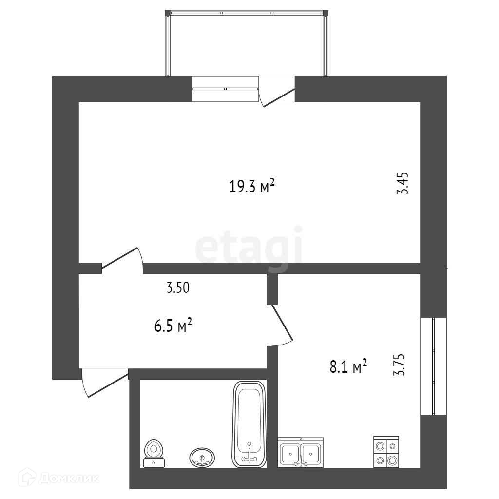 Жилая площадь 19.3 м2