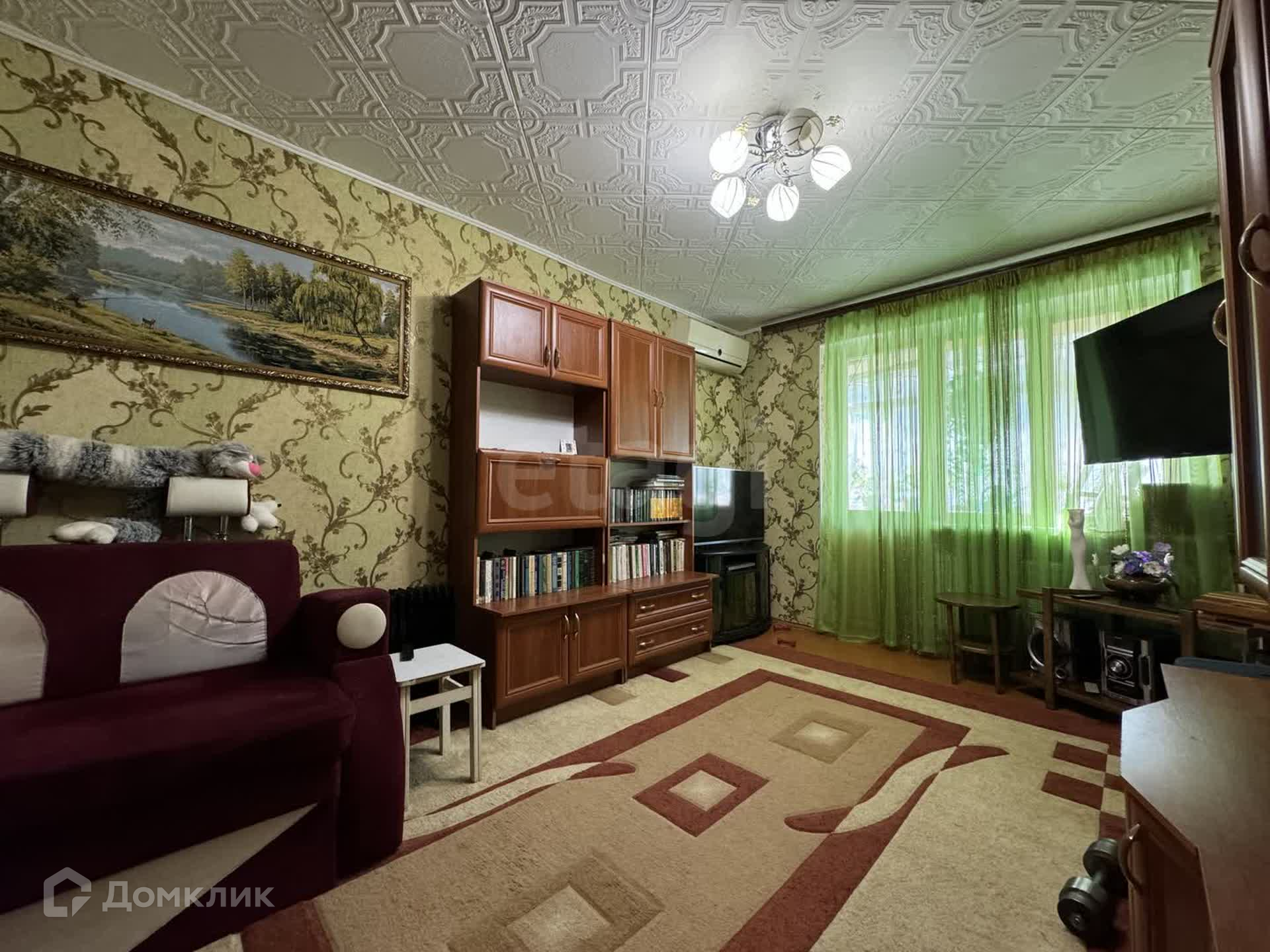 В квартире выполнен косметический ремонт. Балкон не застеклен, оборудован выход непосредственно с балкона во двор. На балконе есть небольшой погреб. Мебель остается частично.