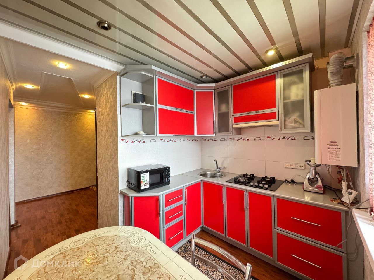Встраиваемая  кухонная мебель и техника в ней остаётся, т. е. приходите на кухню и сразу готовите с удовольствием.