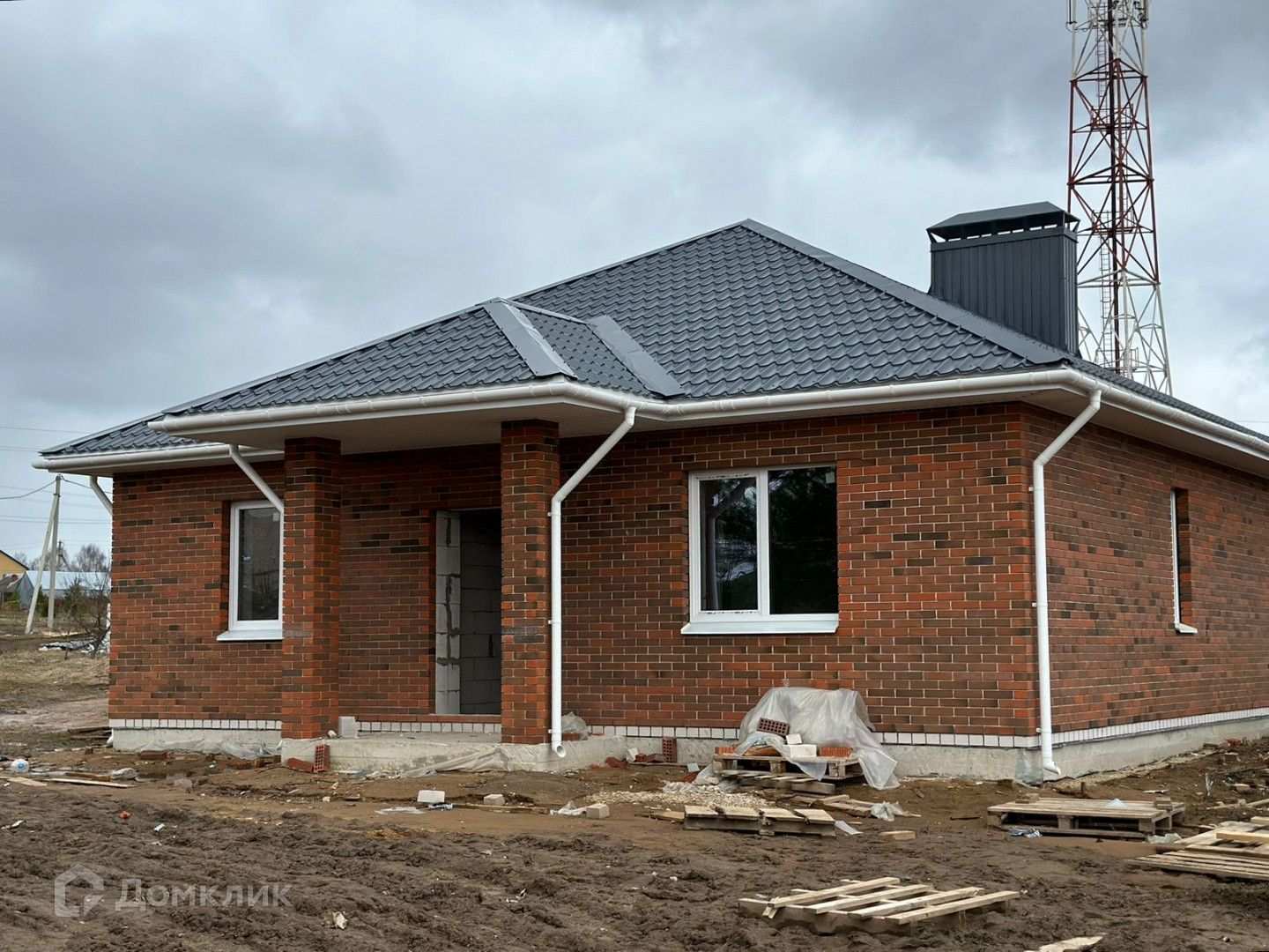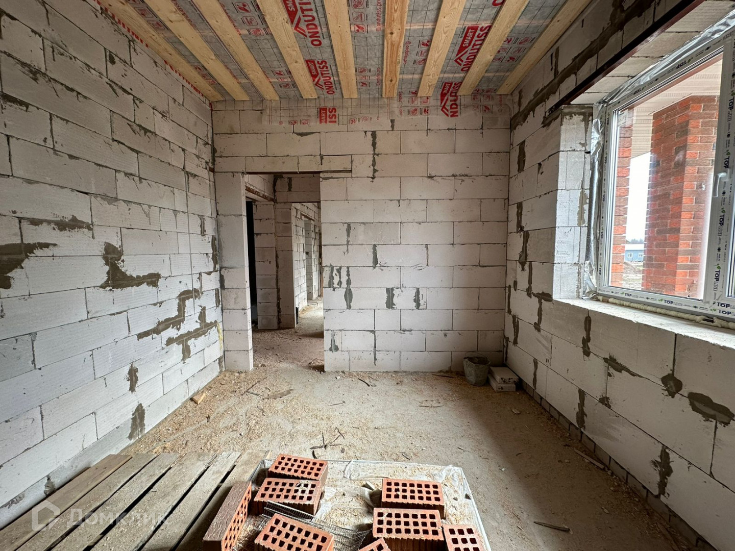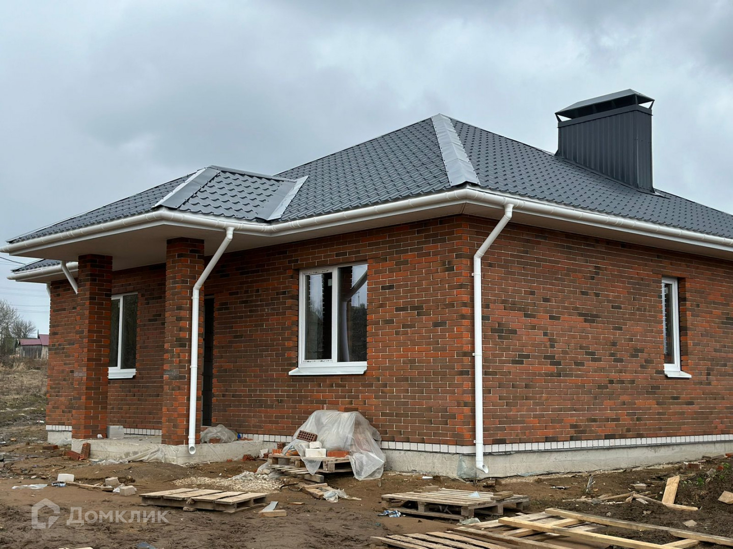Изготовлен из газосиликатного блока с облицовочным кирпичом. ( Баварская кладка)