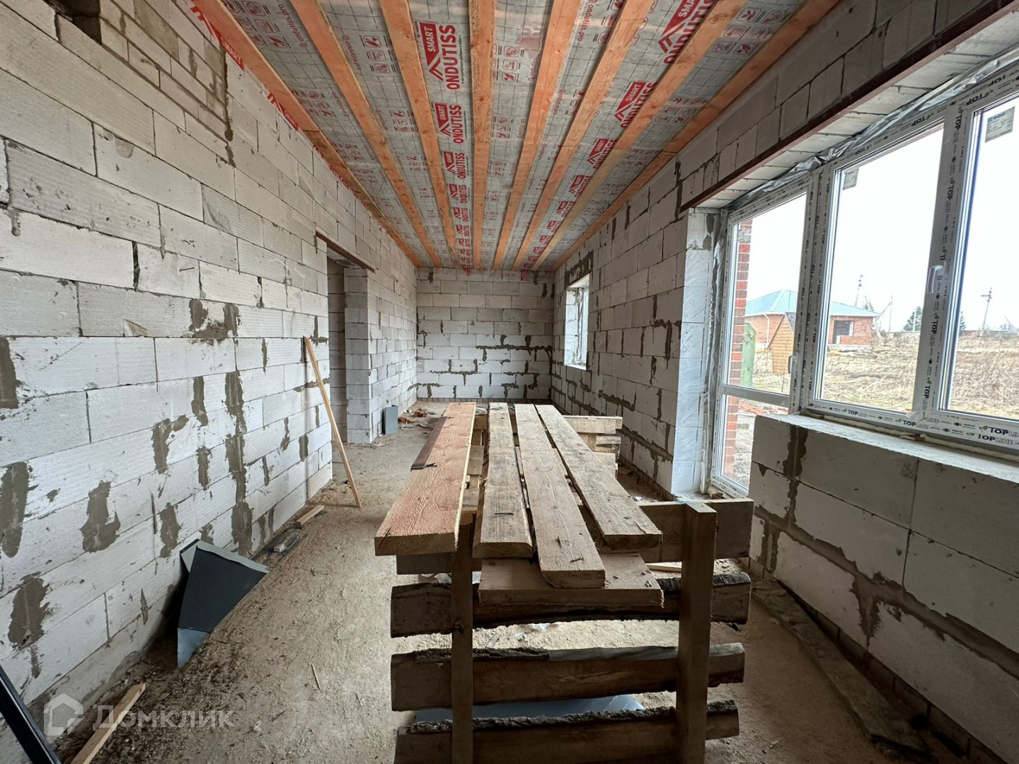 Внутренняя отделка: стяжка пола, оштукатуренные стены, грубо говоря чистовая отделка( возможно до стяжки пола провести теплые полы, проштробить стены)
