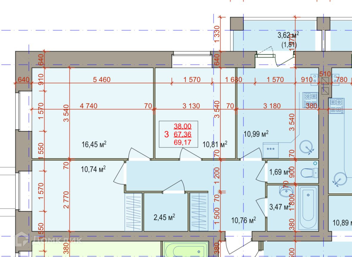 Общая площадь 71 м2