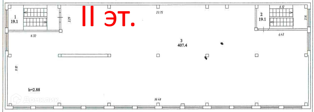 Высота потолков 2.9 м