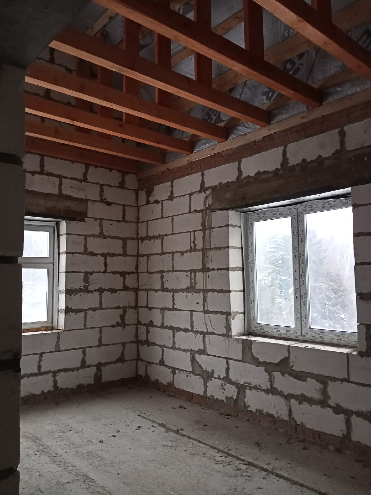 Фундамент плита + лента, цоколь и первый этаж кирпич, второй этаж газобетон, плиты перекрытия. Мягкая кровля с утеплением на 200 для постоянного проживания.