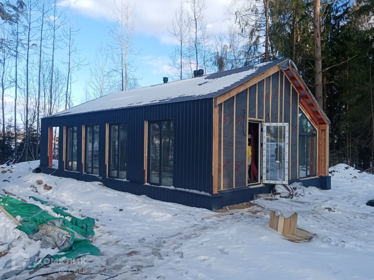 с элементами жидкостного тёплого пола первого этажа. Стены возведены из бруса с наружним утеплением
