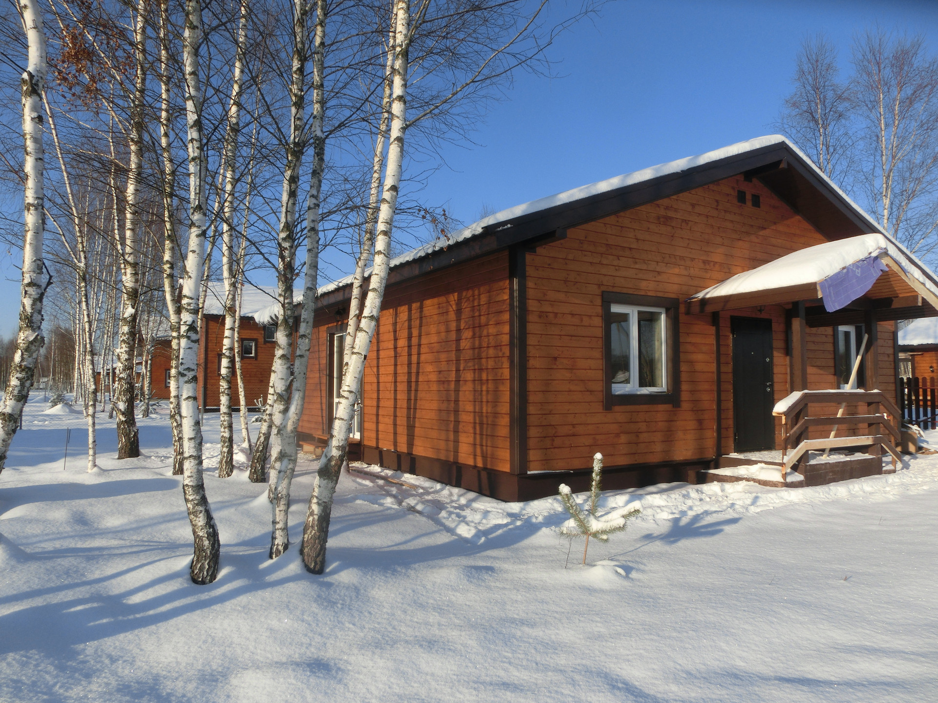 В доме три отдельных спальни, кухня-гостиная, холл, санузел, тамбур-котельная.
