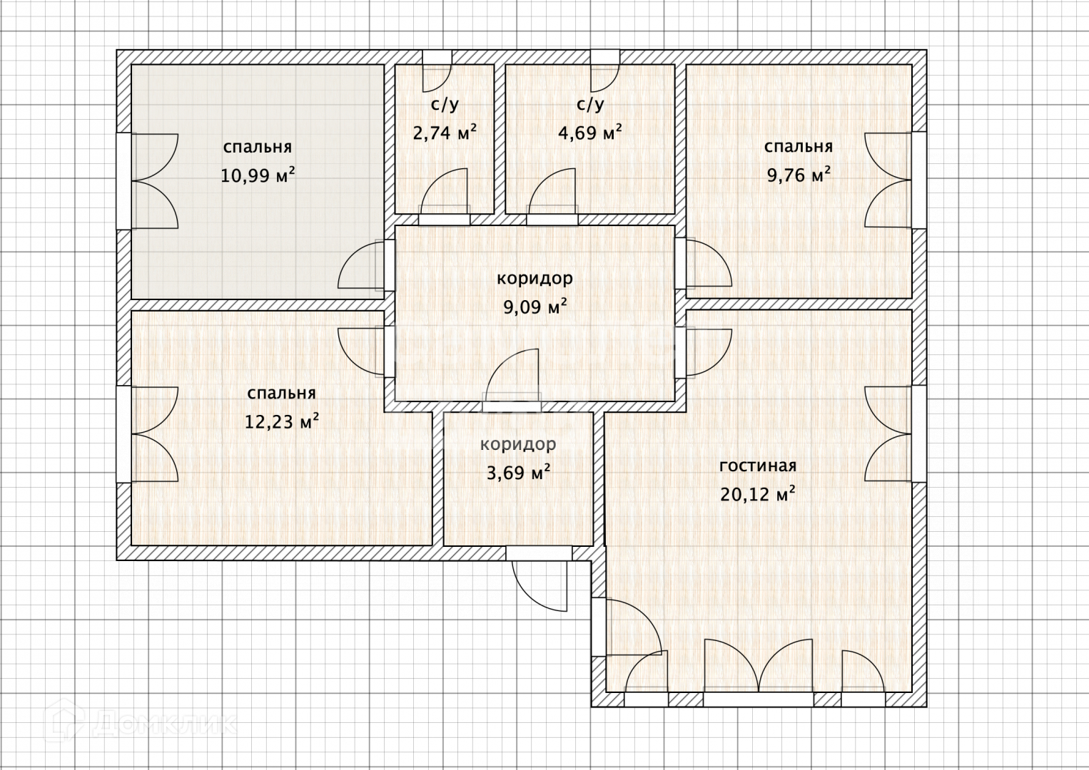 2 спальни по 12кв.м., одна 16 кв.м.