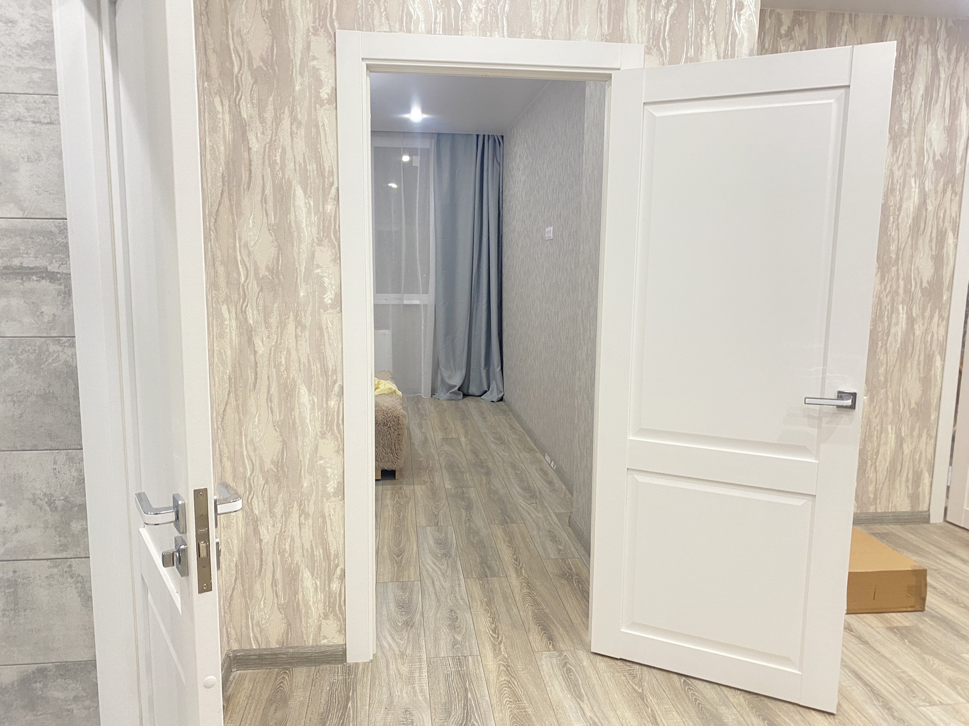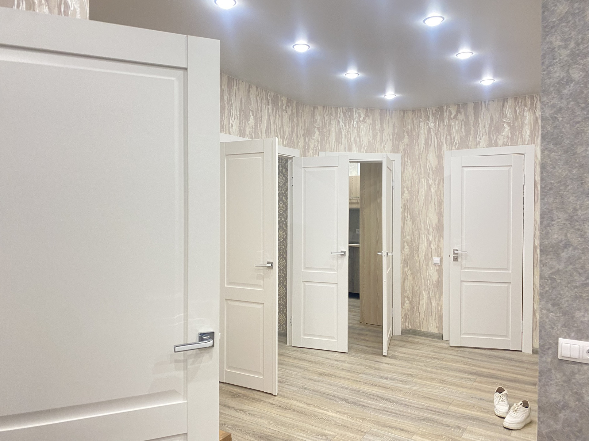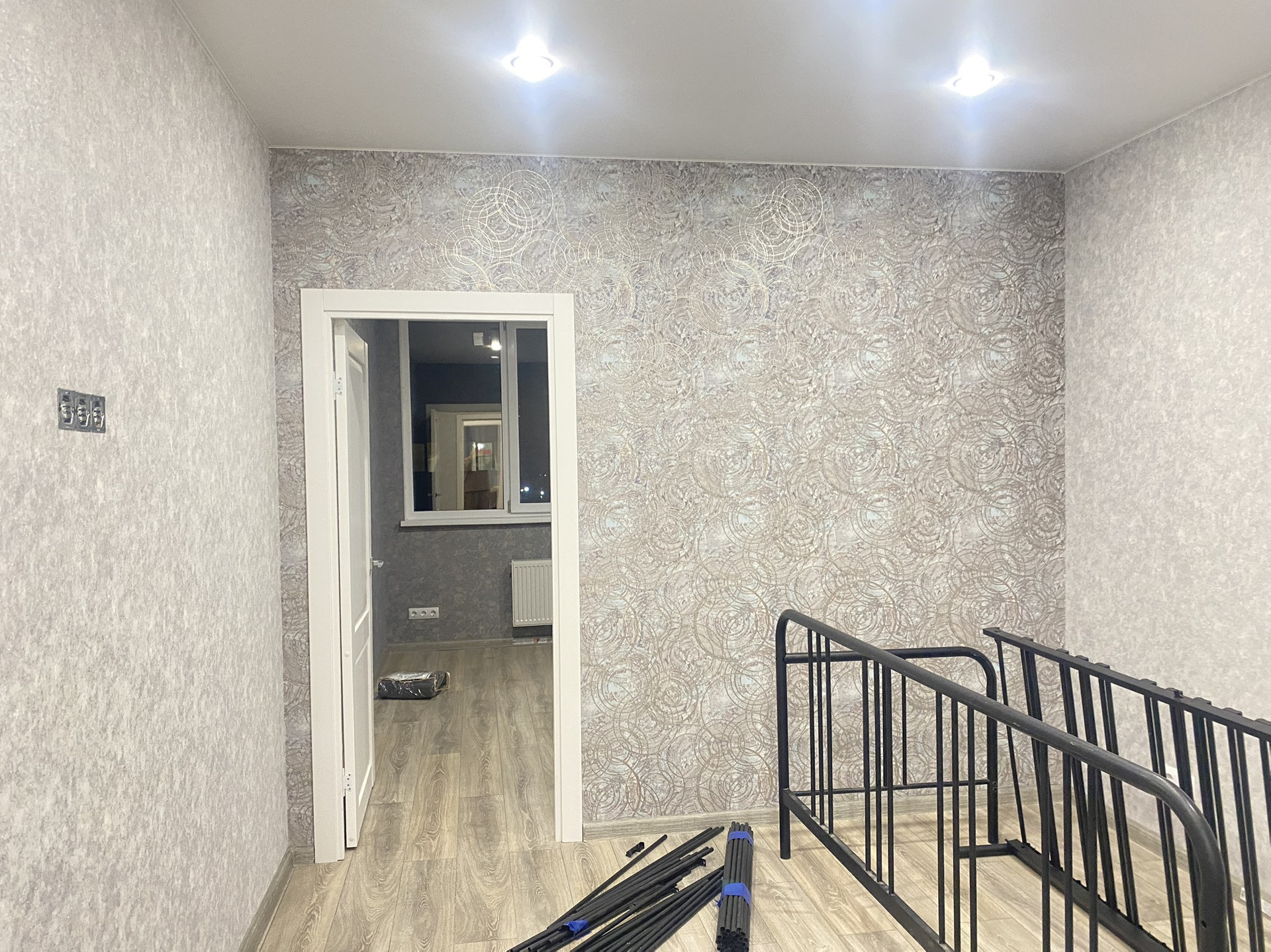 -поклеены дорогие обои
