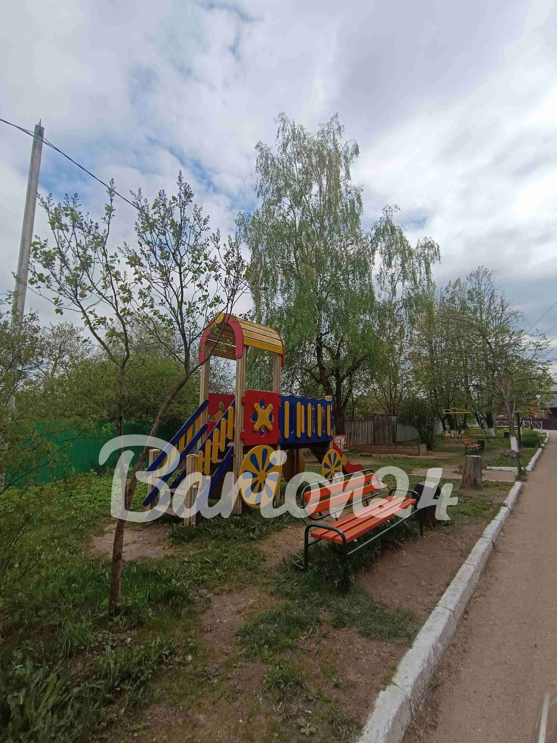 Во дворе парковка и детская площадка.