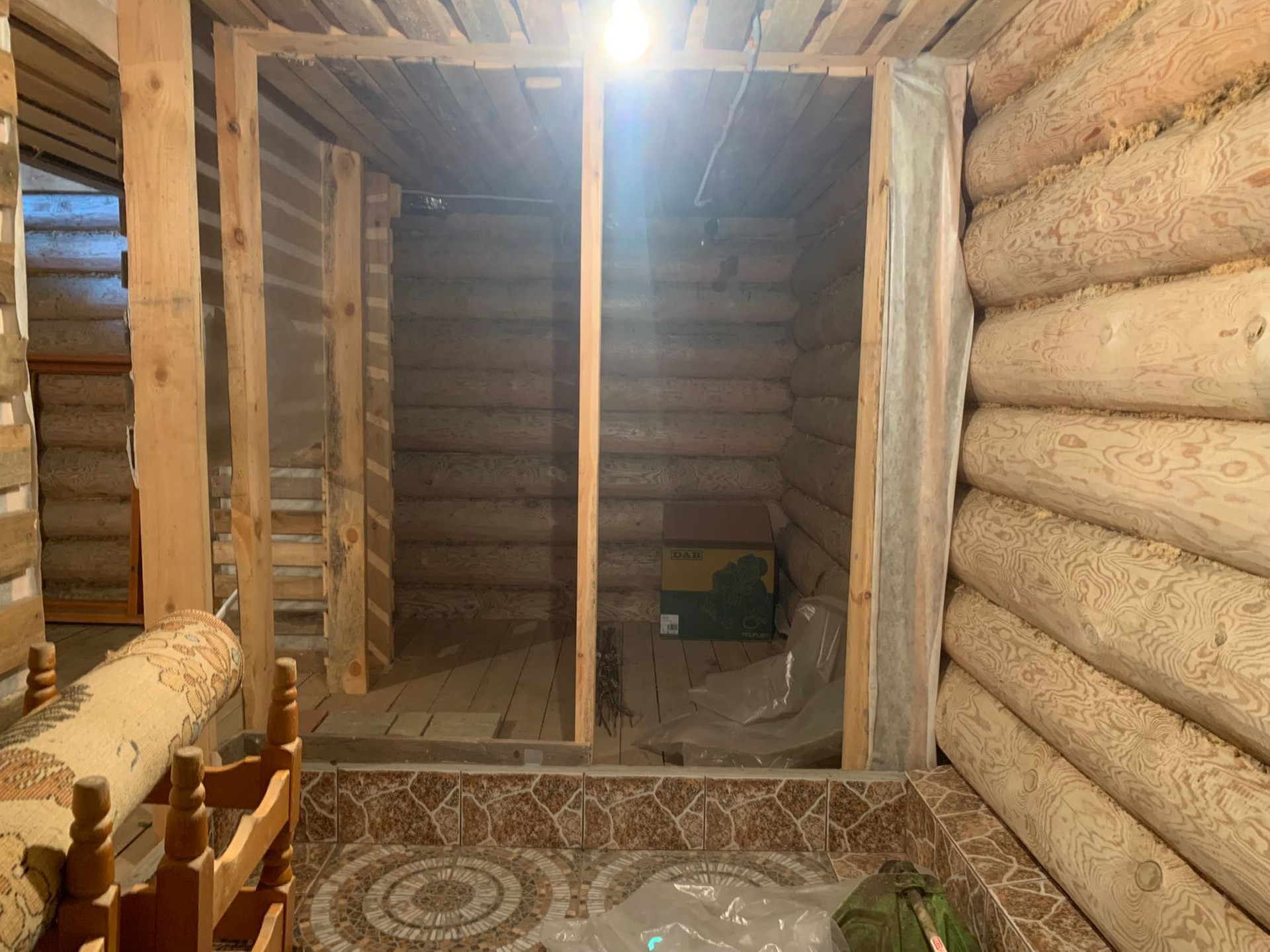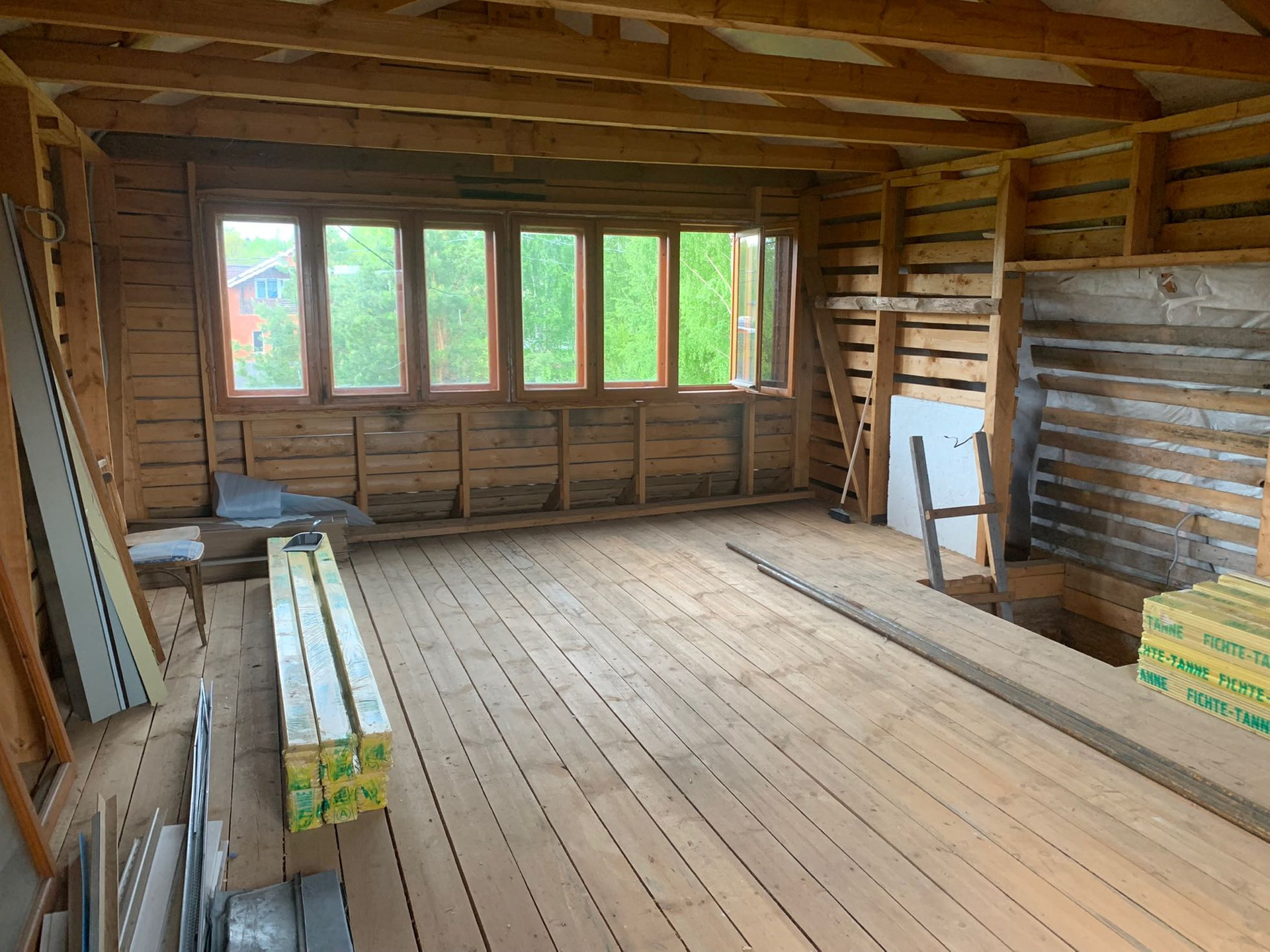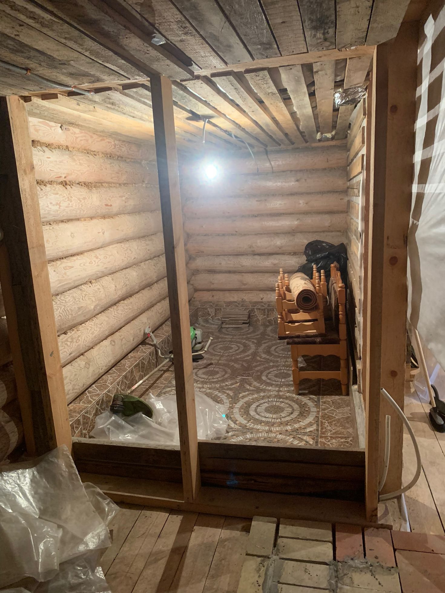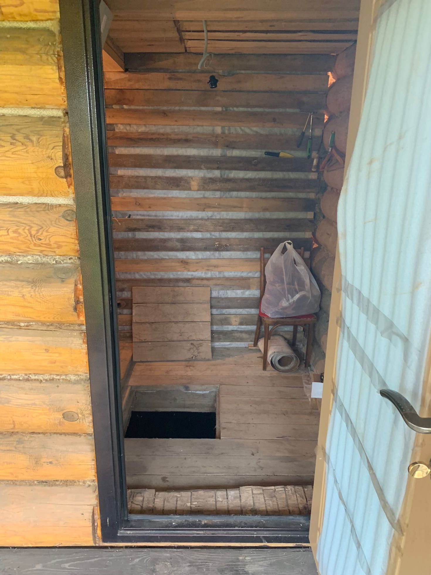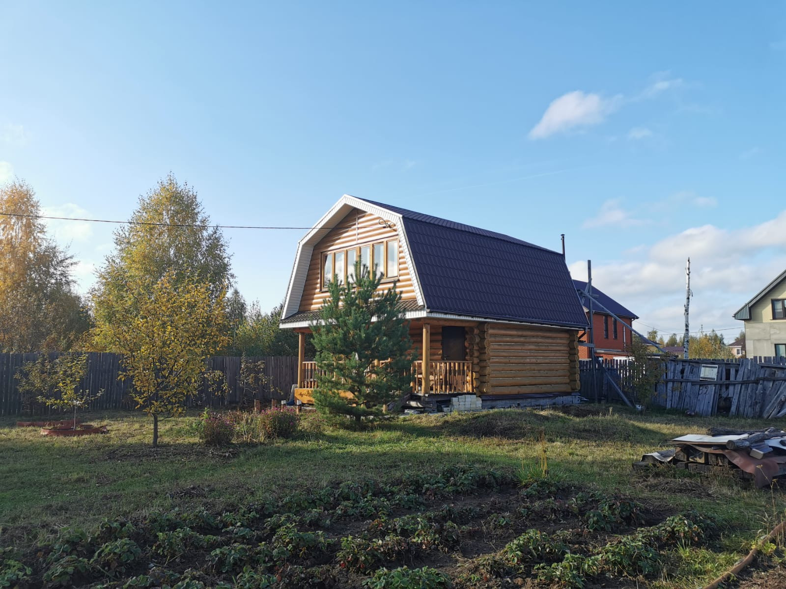 Сруб крепкий. Ремонт требуется. Газ подведён до участка.
