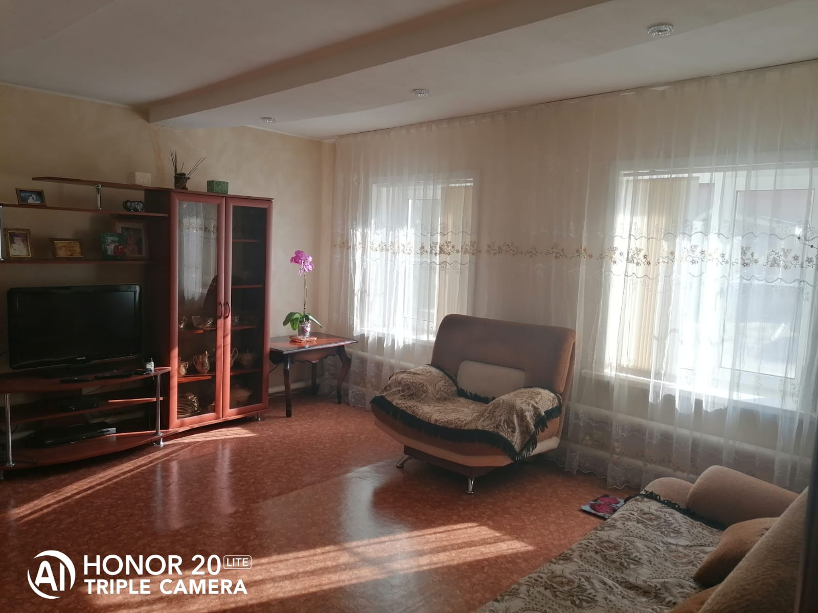 Участок обработанный, все аккуратно, много плодовых деревьев и кустарников. Есть большая теплица, баня. Все очень красиво, много цветов, придомовая территория выложена брусчаткой. К дому отличный подъезд, широкая тихая улица, дружные соседи.