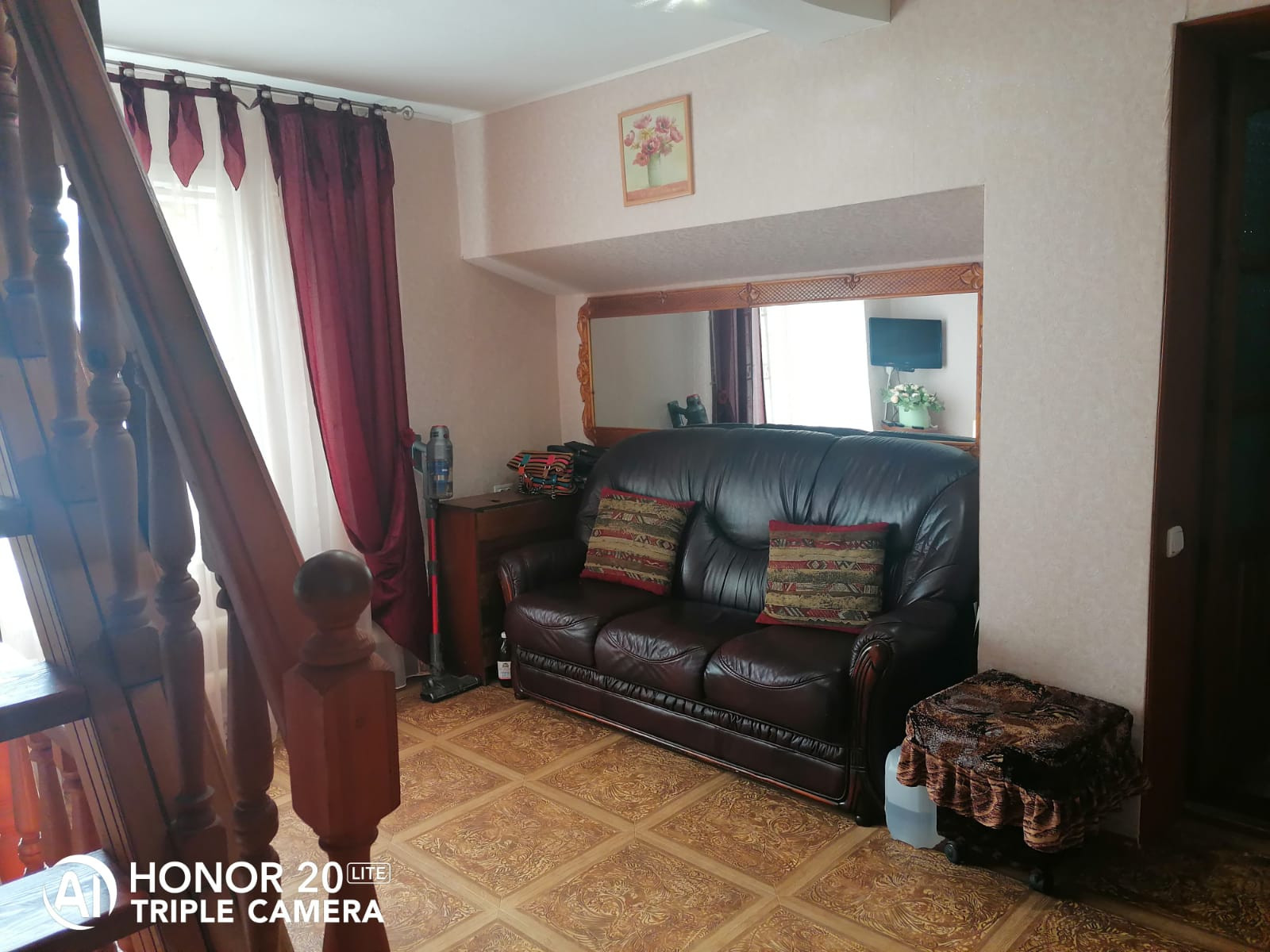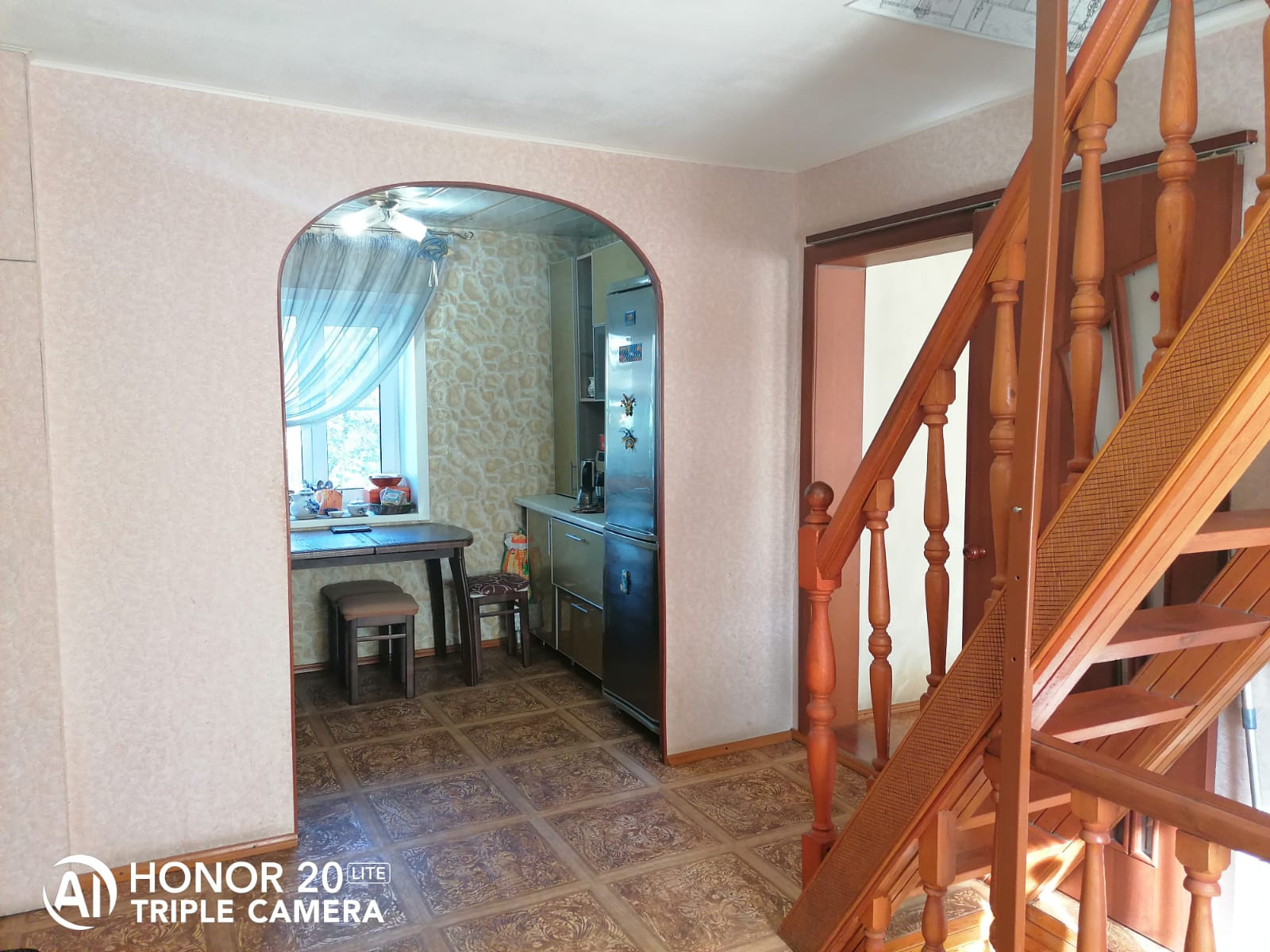 Крепкий, ухоженный, в хорошем состоянии. Бревенчатый, с кирпичным пристроем, обложен кирпичом. В доме хорошая, удобная планировка: На первом этаже большая светлая гостиная, спальня, просторный холл, кухня. На втором этаже жилая комната 20 кв м, небольшой балкончик. Санузел расположен на цокольном этаже, есть ванна, душевая кабинка. Там же находится и котельная.