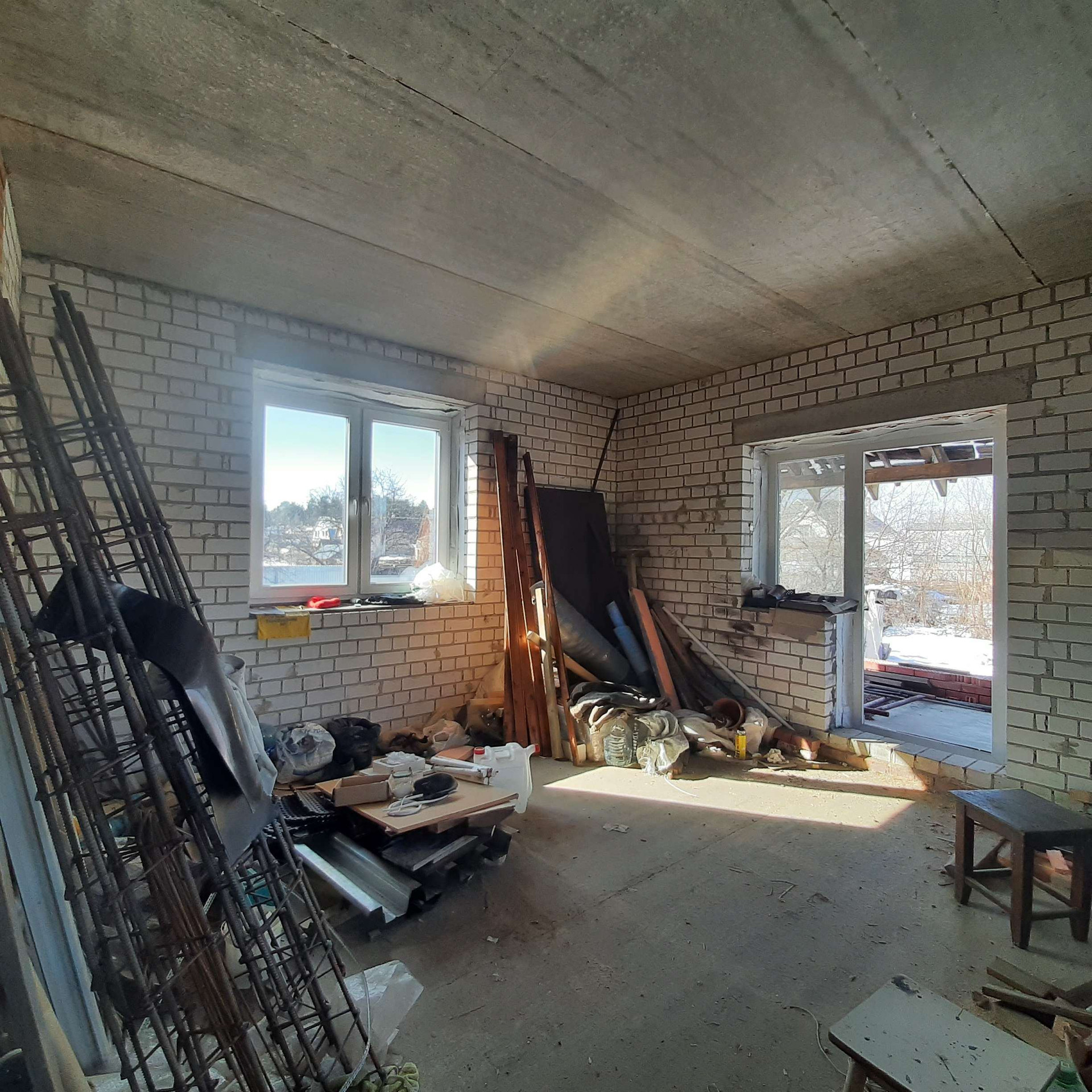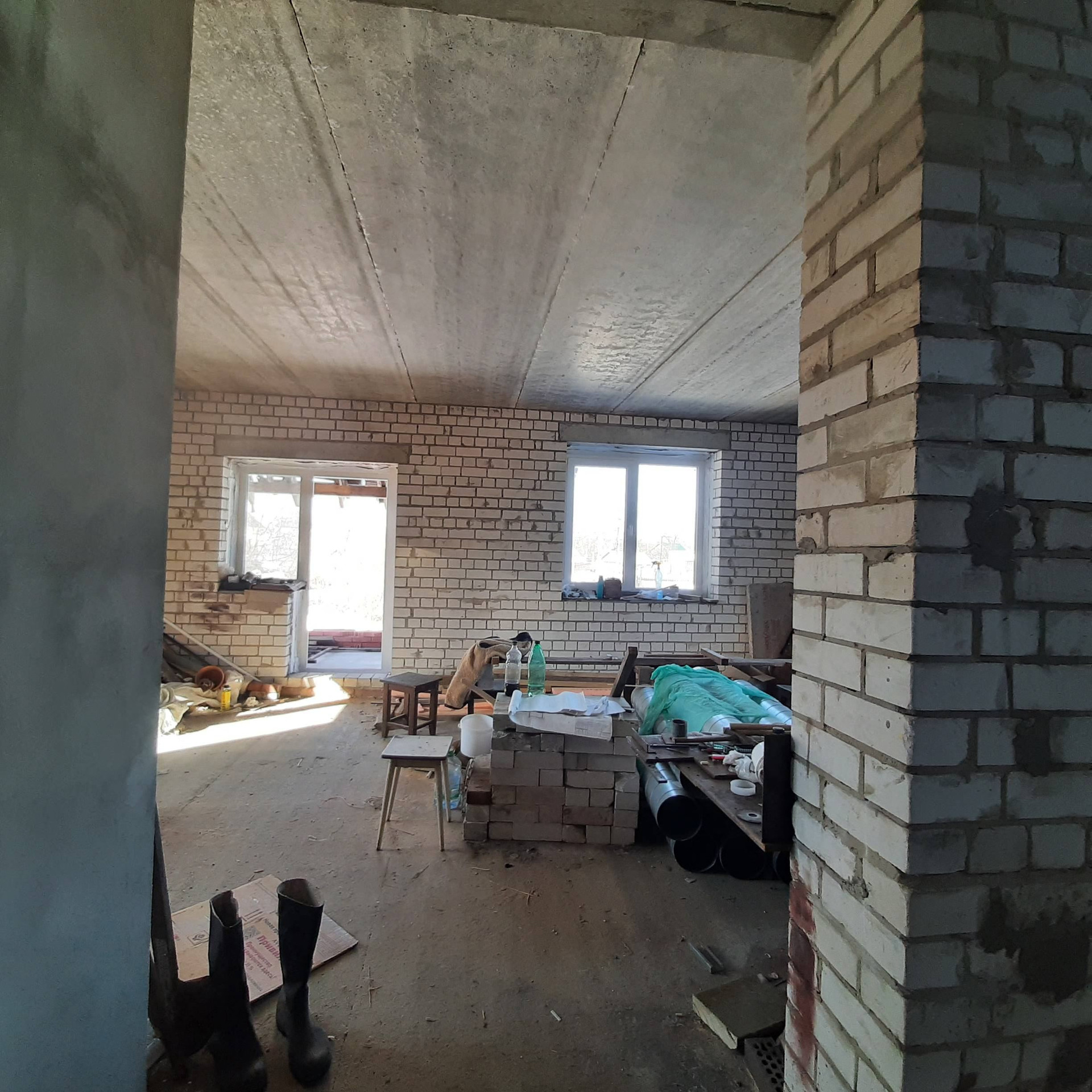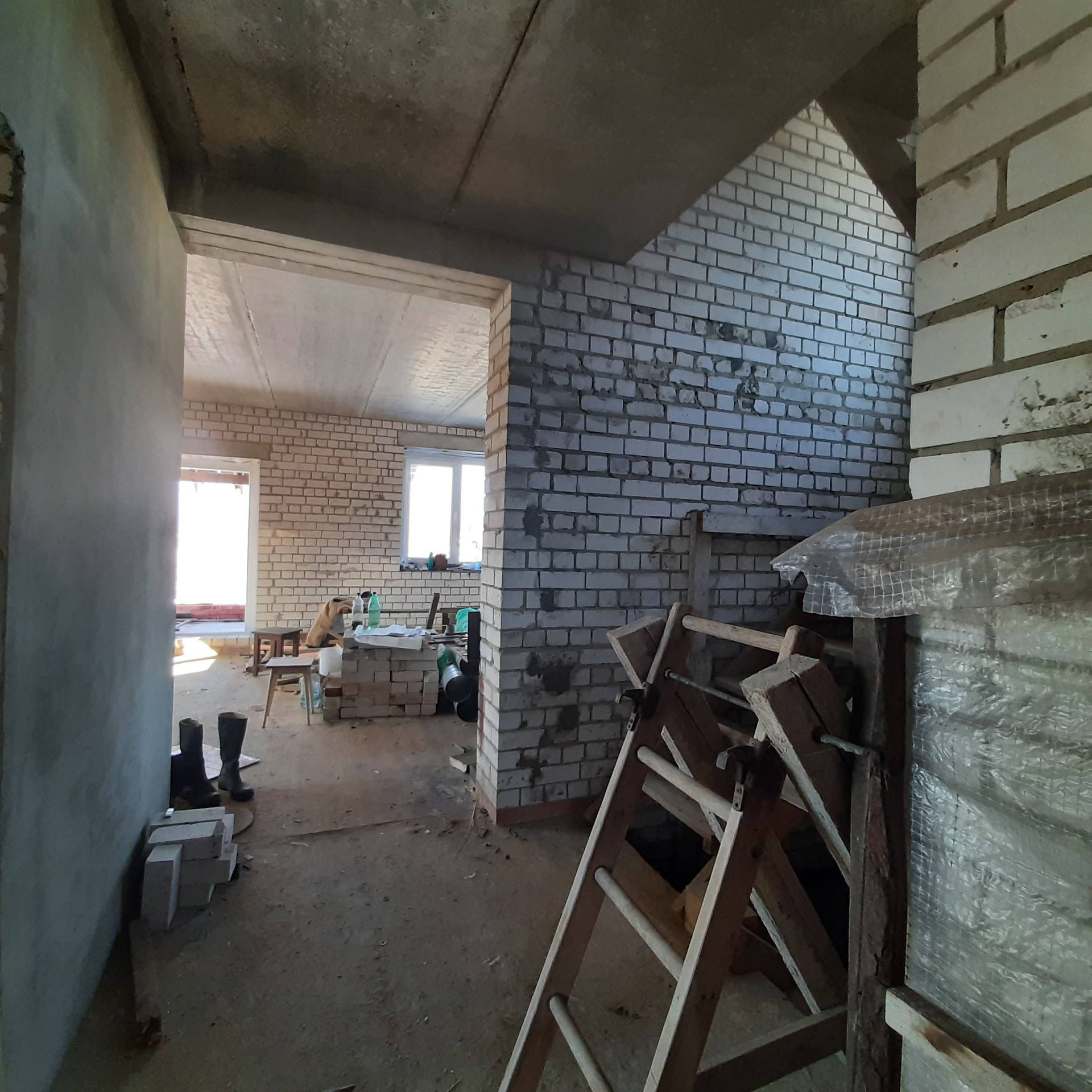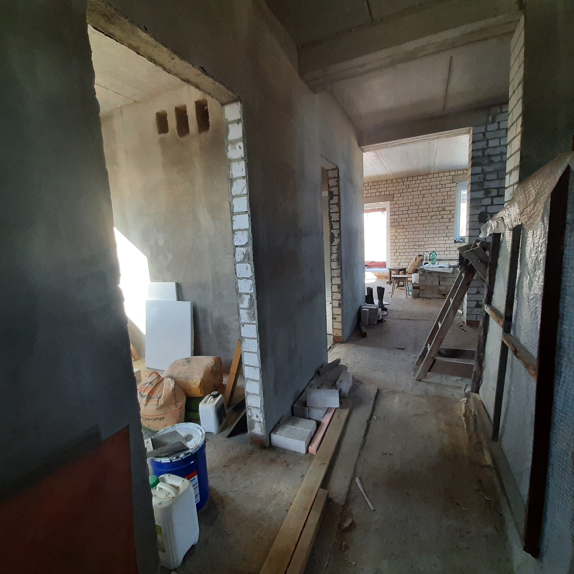 ✔️ внутренняя отделка – штукатурка (исключение – кухня-гостинная и лестничный пролет).