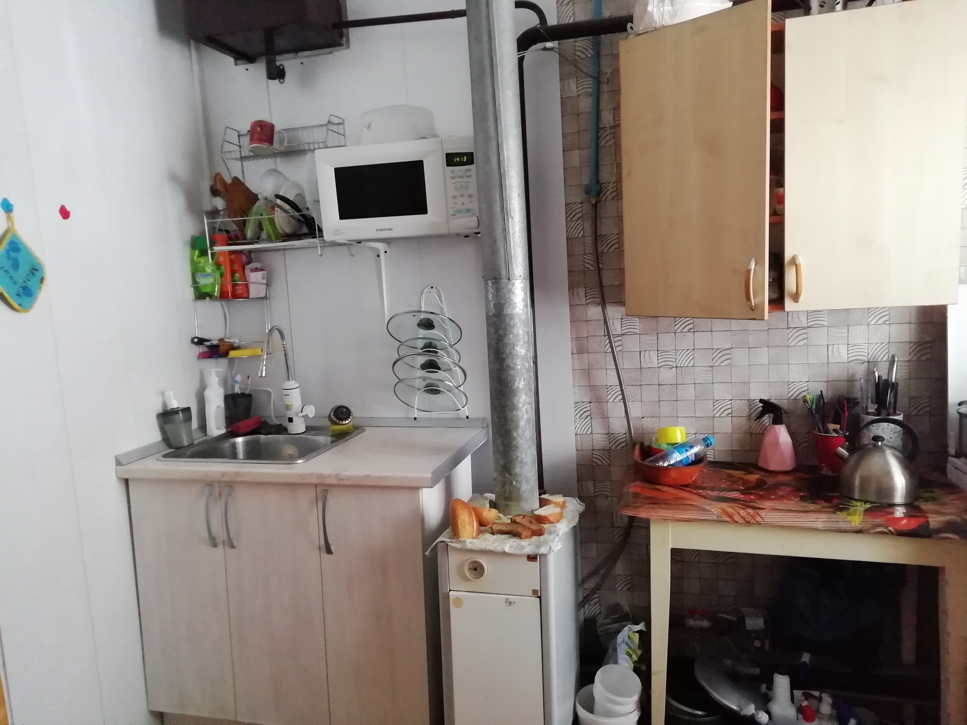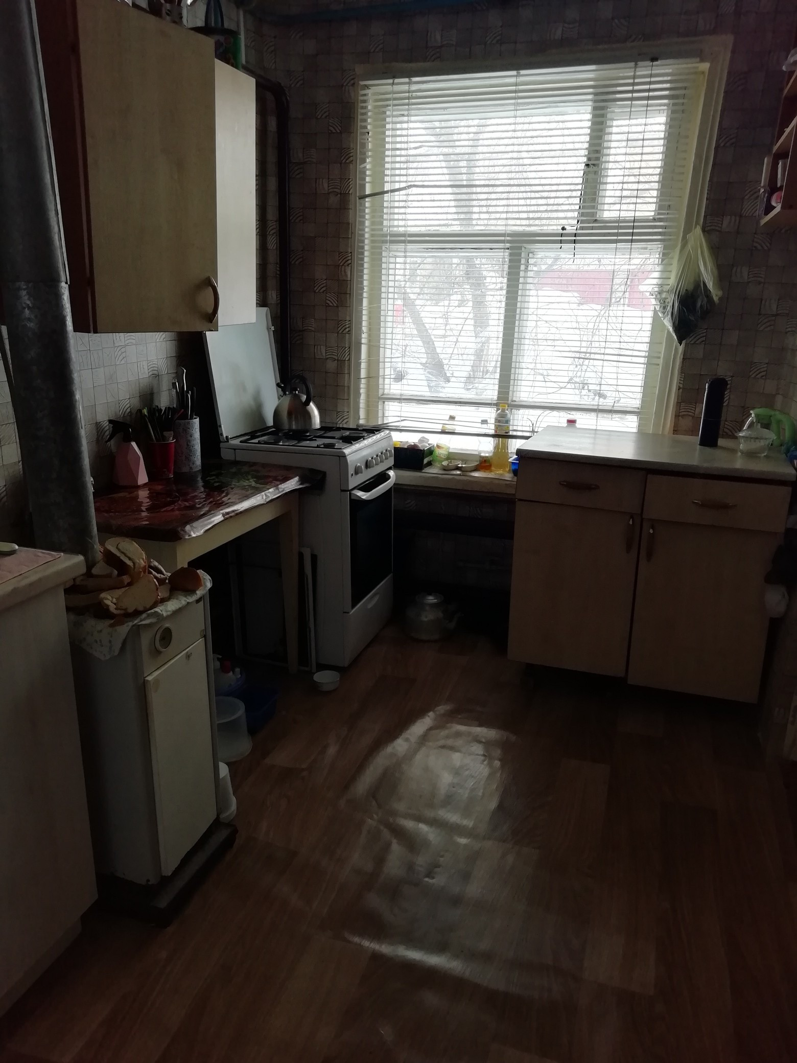 . Вода своя, забита станция, отопление тоже свое АГВ. Есть два подпола для хранения солений и овощей.. Имеются также две сарайки и земельный участок. Квартплата не большая  Удобства на дворе. .. Но есть место для установки душ