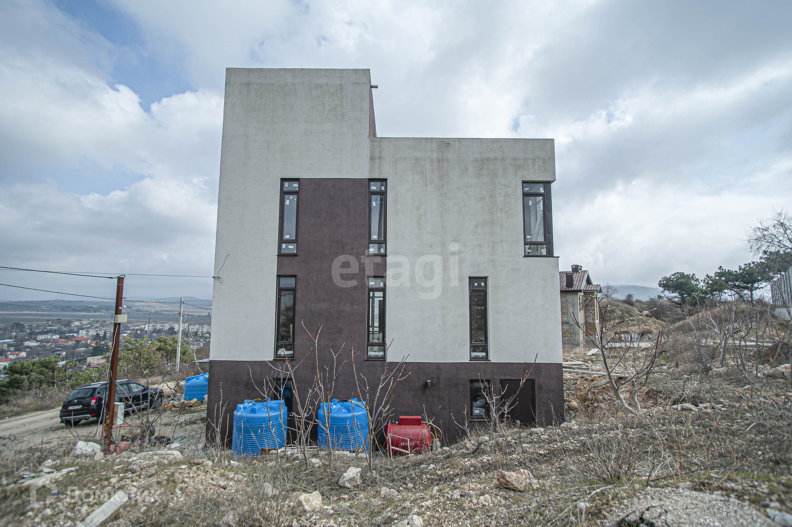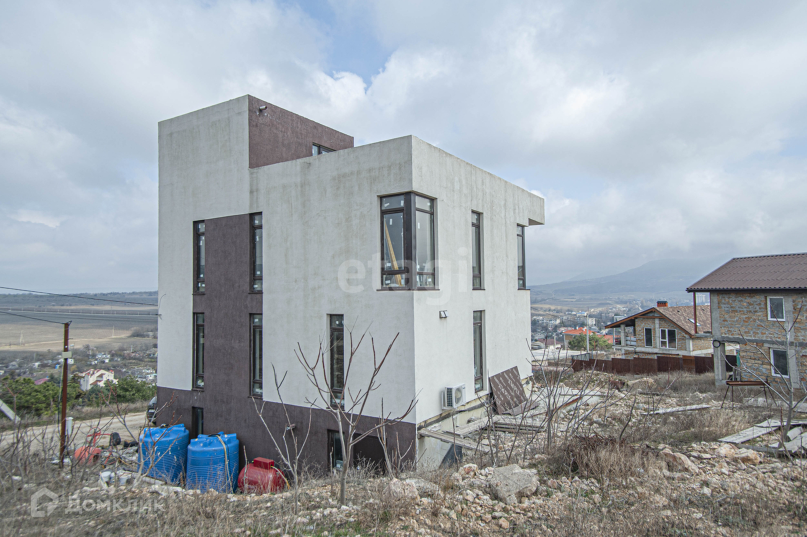 Продам трёхэтажный просторный дом на ВИДОВОМ участке в Балаклаве. Ценность данного дома в его локации, дизайне и конструктиве. С окон и с террасы, расположенной на крыше здания, открываются сумасшедшие виды - бесконечные виноградники Золотой Балки от Диарамы Штурма Сапун-горы до Форта Северной Балаклавы в горах, которые надежно защищают данную местность от холодных ветров с моря. Вместе с тем до набережной Балаклавы всего 4 остановки, вся инфраструктура сопутствующая цивилизации в шестиста метрах. По Генплану в ближайшем будущем поблизости (300-400м) пройдёт новая дорога через всю Балаклаву на Оборонное. Дизайн дома исполнен для себя любимого - первый этаж open space - огромные площади не ограниченные стенами, что позволяет ощущать свободу пространства. На третьем этаже расположена сауна и выход на крышу, где предполагается размещение мангальной зоны. Про конструктив: железобетонный каркас из бетона М350 с усиленным армированием (местами арматура до 18мм) под сейсмику 8 баллов даёт ощущение нахождения в непоколебимой крепости не боящейся никаких земельных расстройств и упавшего с неба Хаммера. Плиты перекрытия в данном строении уложены не на колонны, а на ригеля 350мм, которые в свою очередь опираются на колонны, коих в данном здании 24 штуки по цокольному этажу!! Утеплены колонны в отличие от других обычных домов 100мм, что даёт намного бОльшую теплоизоляцию. По всему дому разведён тёплый пол. Панорамные окна Veka. Отопление газовое.
