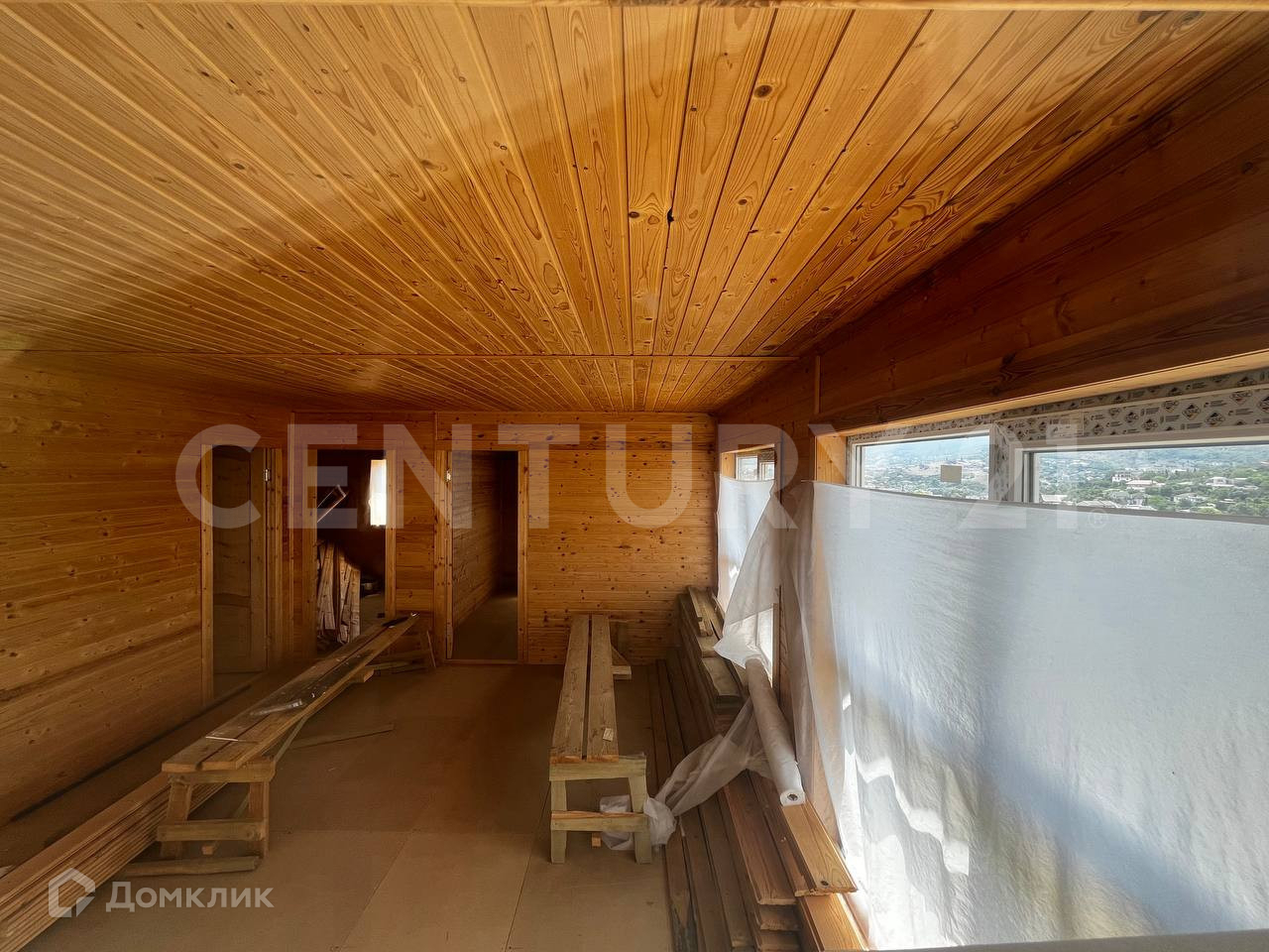 Внутри выполнена отделка из натурального дерева (вагонка), нужно обработать ее, придать цвет по вашему дизайн-проекту.