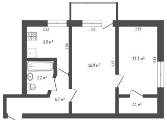 2-ком. квартира на продажу, 43.3 м2, улица Аксютина, 39