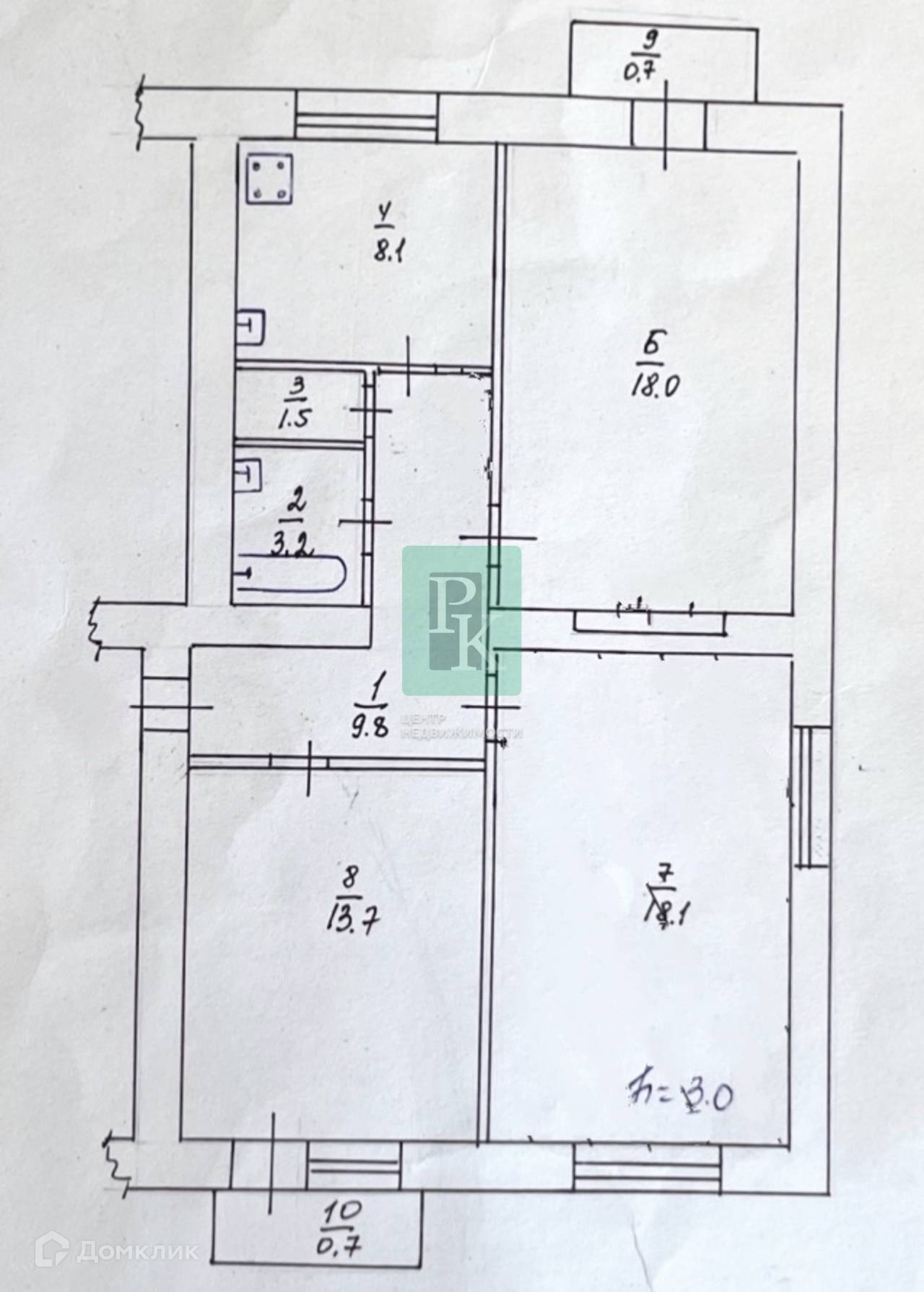 -Высота потолка: 3 м