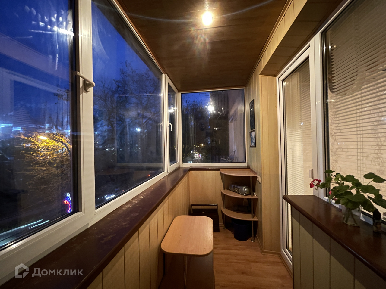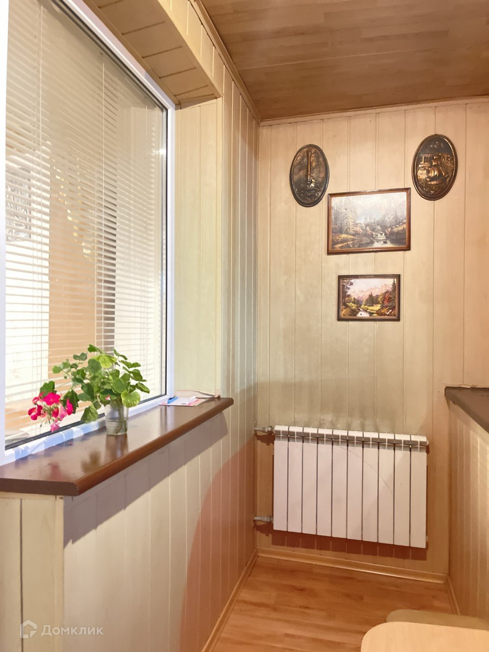 Лоджия утеплена и застеклена, выведен радиатор отопления- поэтому там можно организовать дополнительное спальное место или кабинет с рабочим столом.