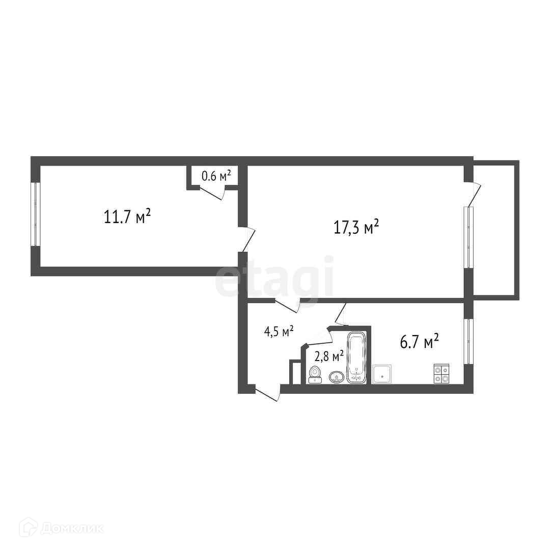 Общая площадь 43.6 м2