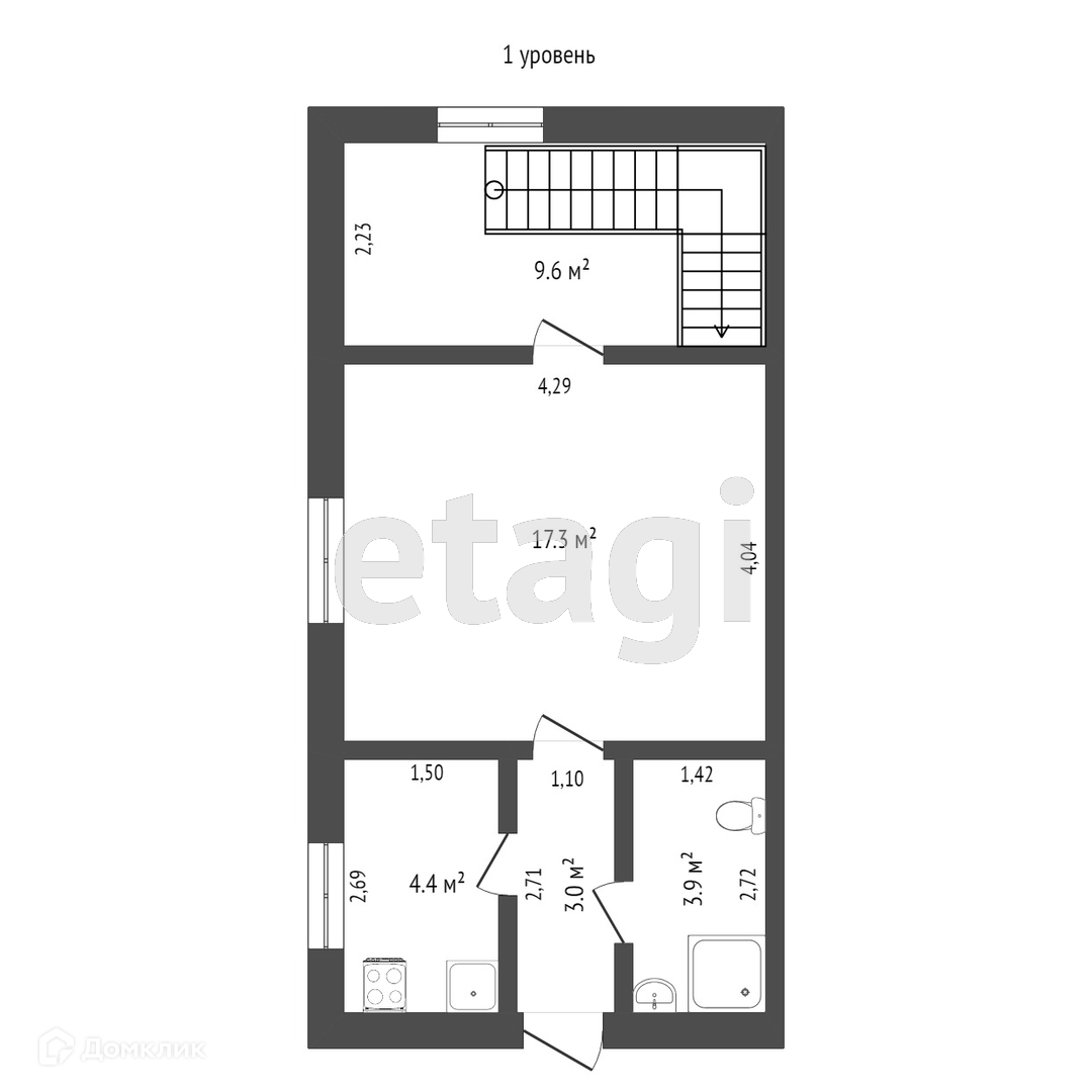 Жилая площадь 26.9 м2