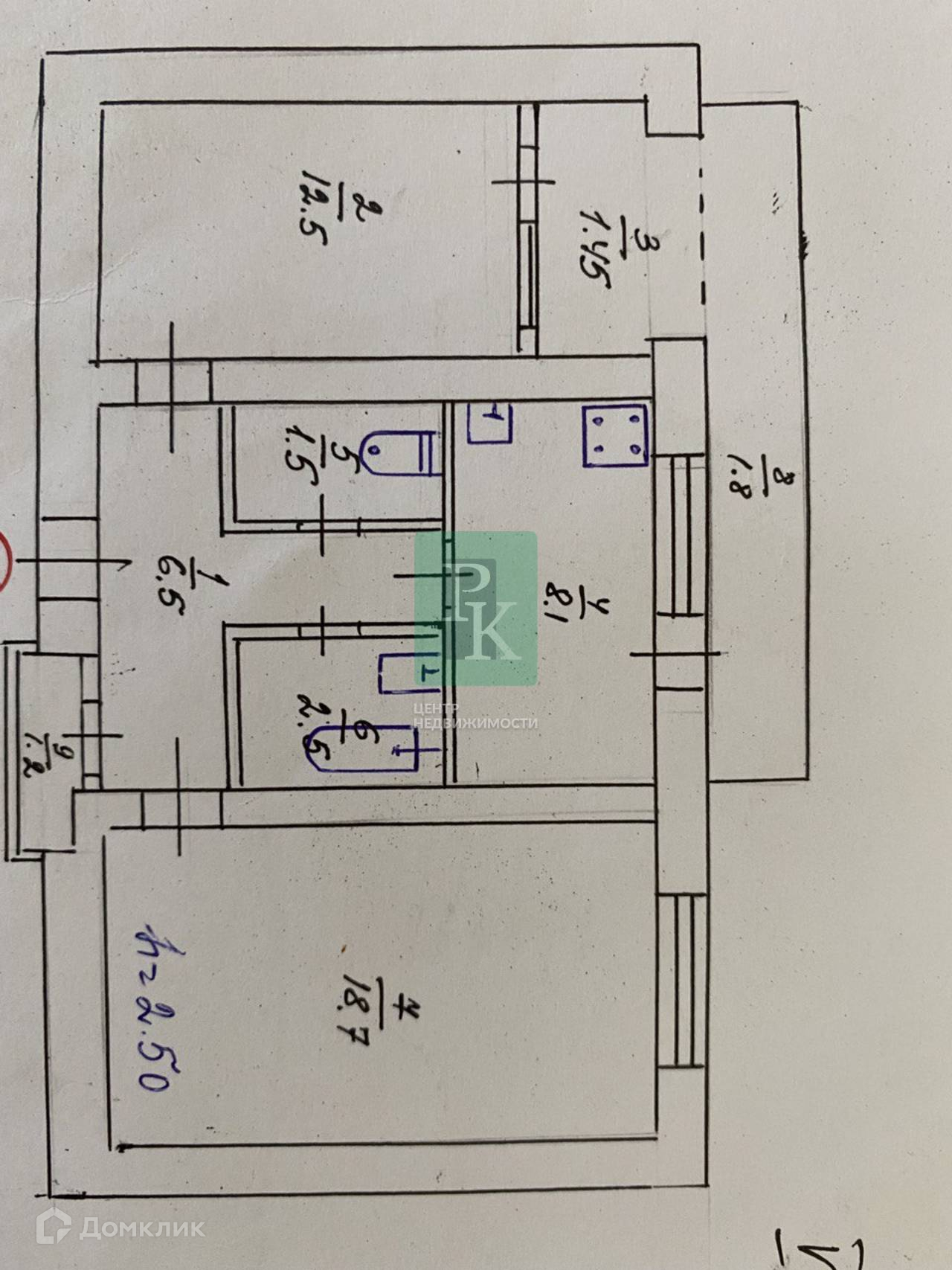 Высота потолка: 2,50 м