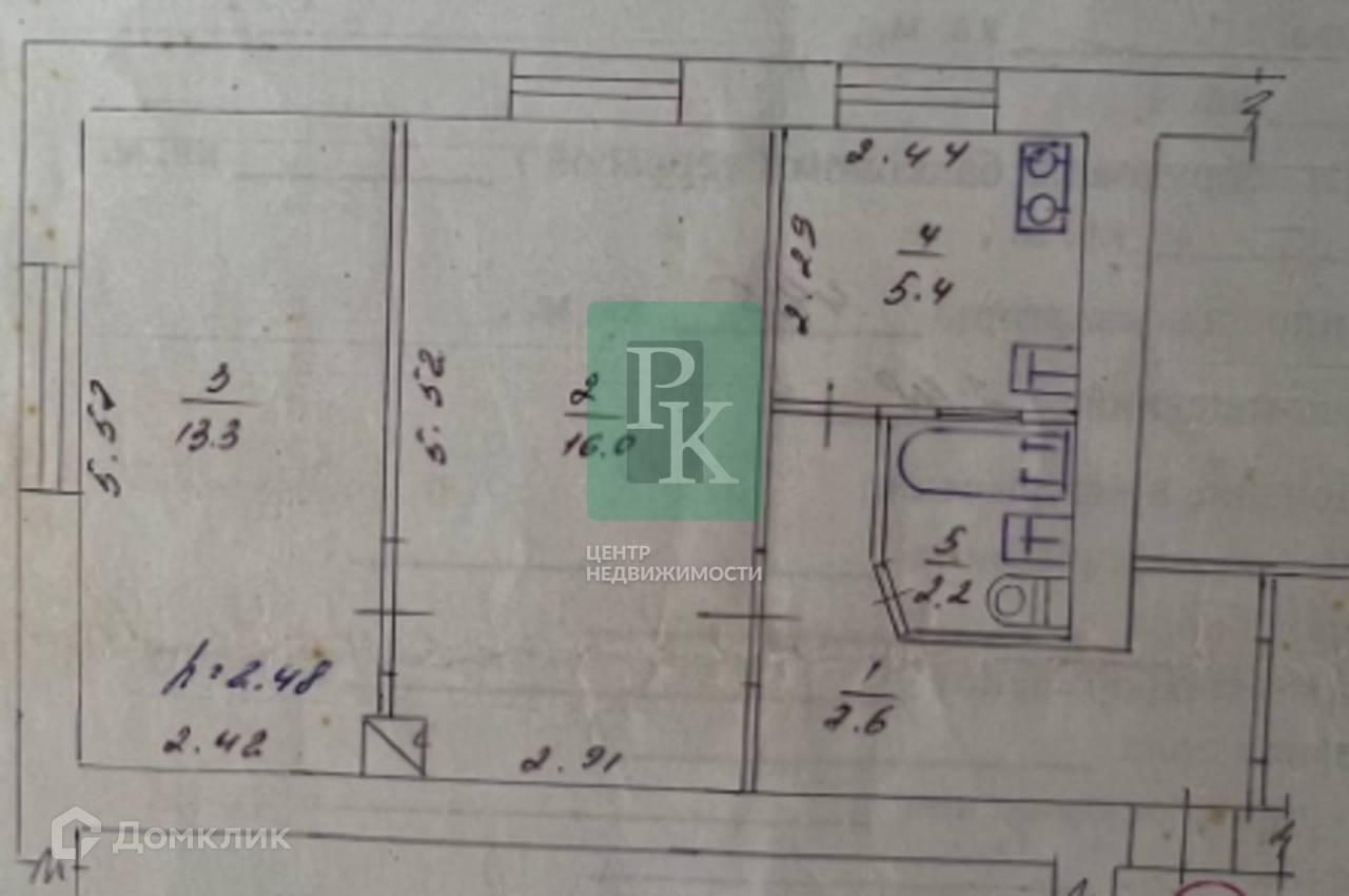 -Площадь кухни: 5.4 м2