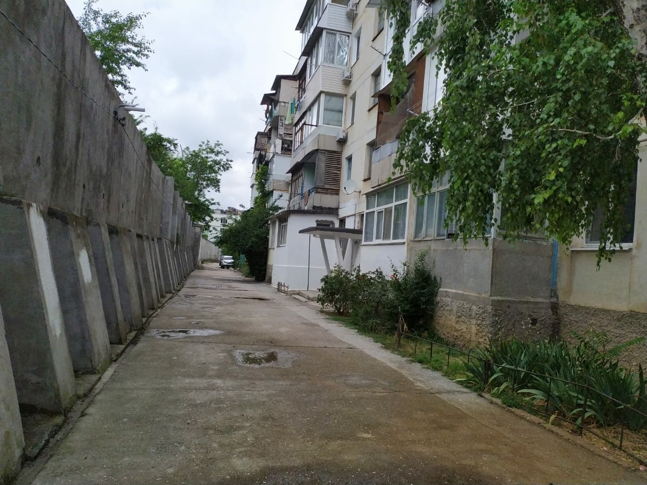Две комнаты и кухня-выходят во внутренний двор,южная сторона, одна комната - на север.