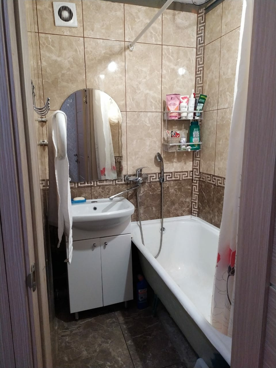 - на кухне и в коридоре,ванной комнате и санузеле плитка напольная,