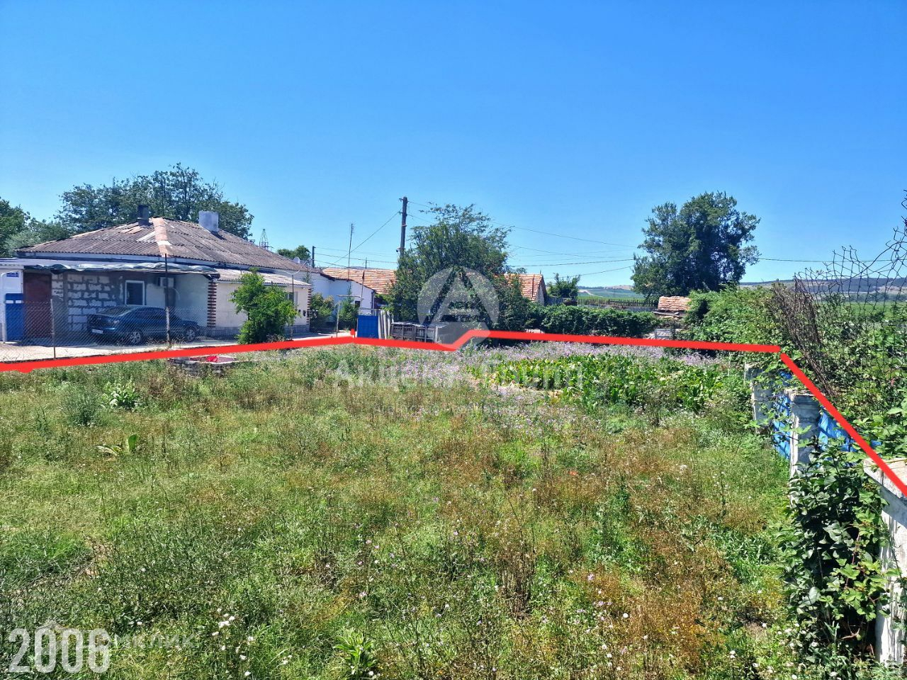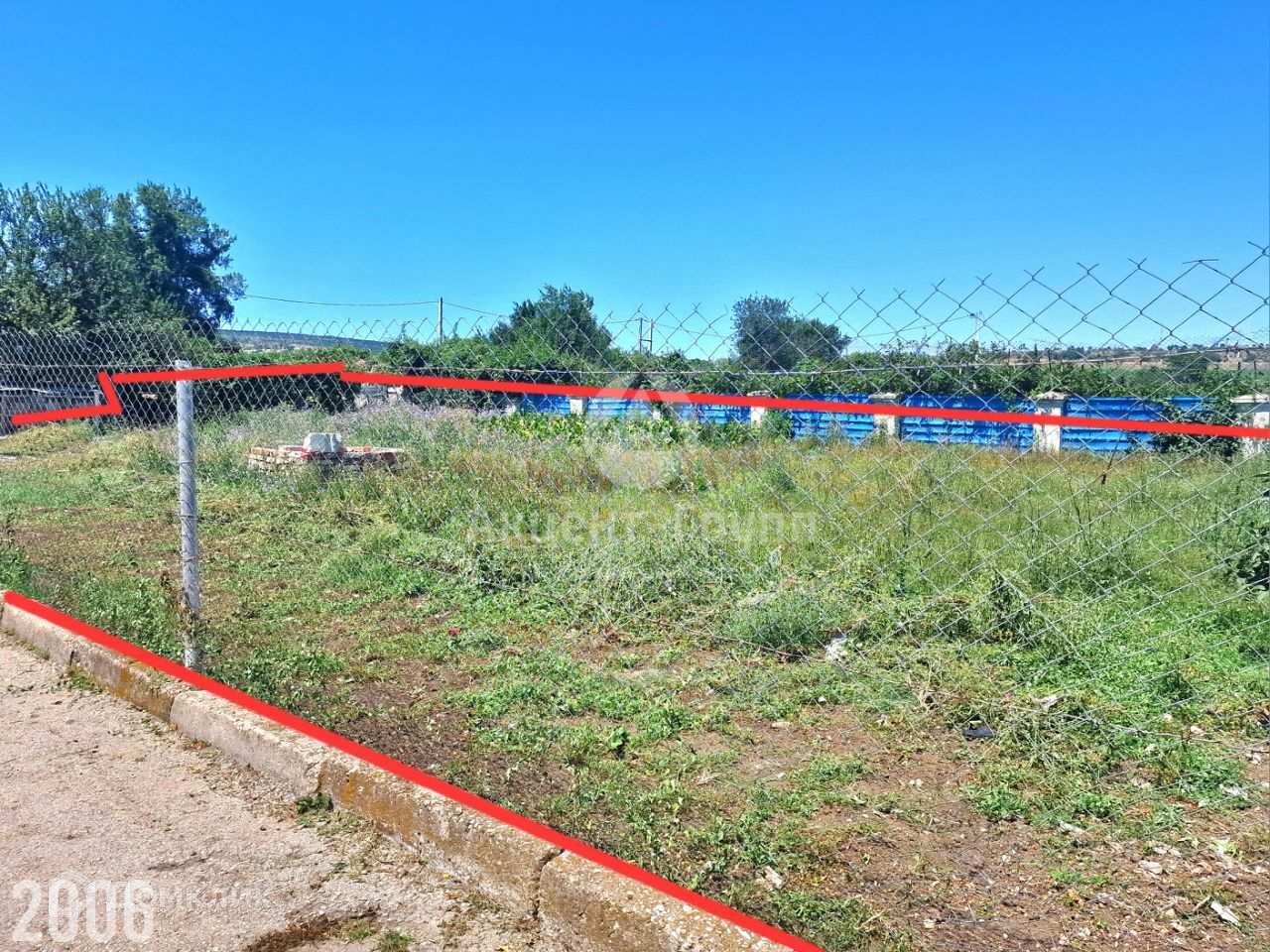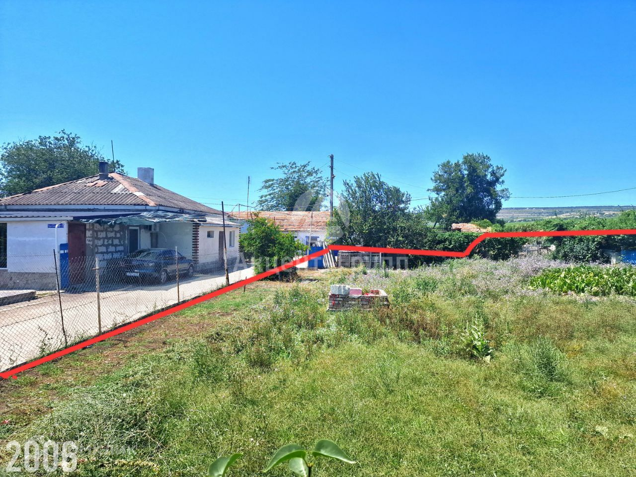 Участок ровный, широкой прямоугольной формы. Частично огорожен. Границы участка вынесены в натуру (забиты колышки).