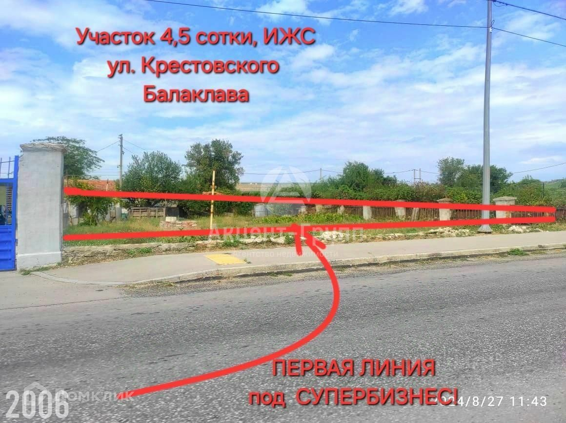Продаётся шикарный участок под бизнес или строительство жилого дома в первой линии от центральной дороги в Балаклаве на ул. Крестовского, 87. Есть разрешение на строительство жилого дома.