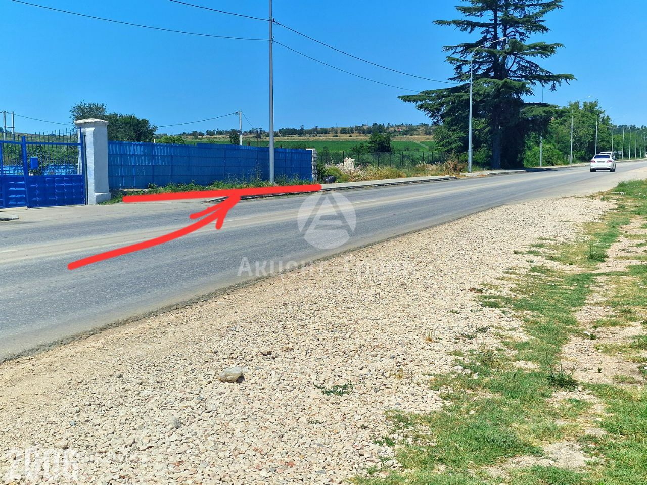 Фасад участка выходит на оживленную дорогу. Остановка общественного транспорта напротив,  в 20-ти метрах.