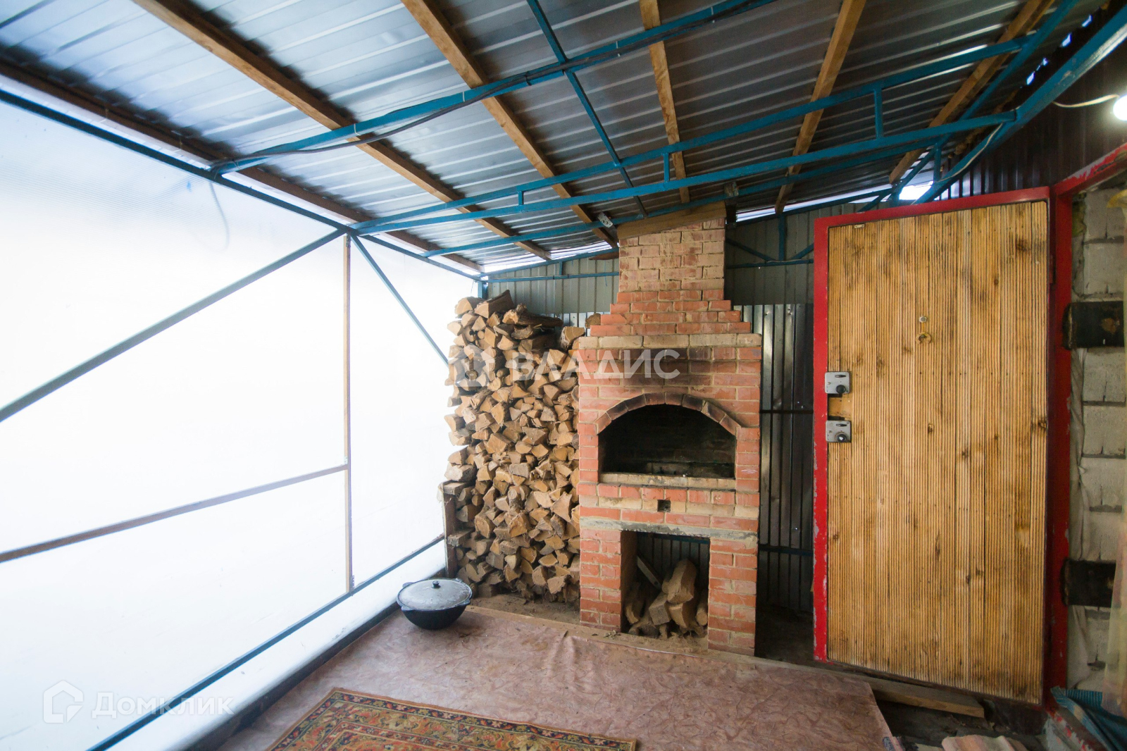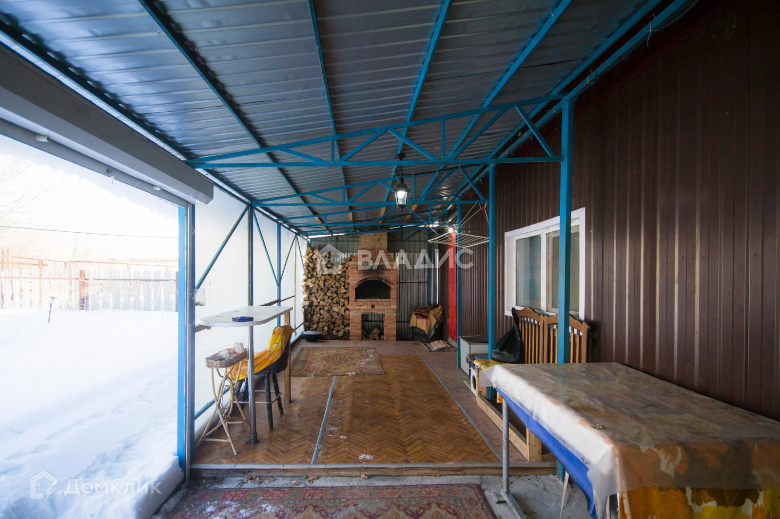 Для комфортного отдыха оборудован просторный навес. Кровля - профлист, закрыт поликарбонатом. Сделан барбекю-камин!!!!!! (приспособлен также для копчения). Под навесом также имеется мебель.