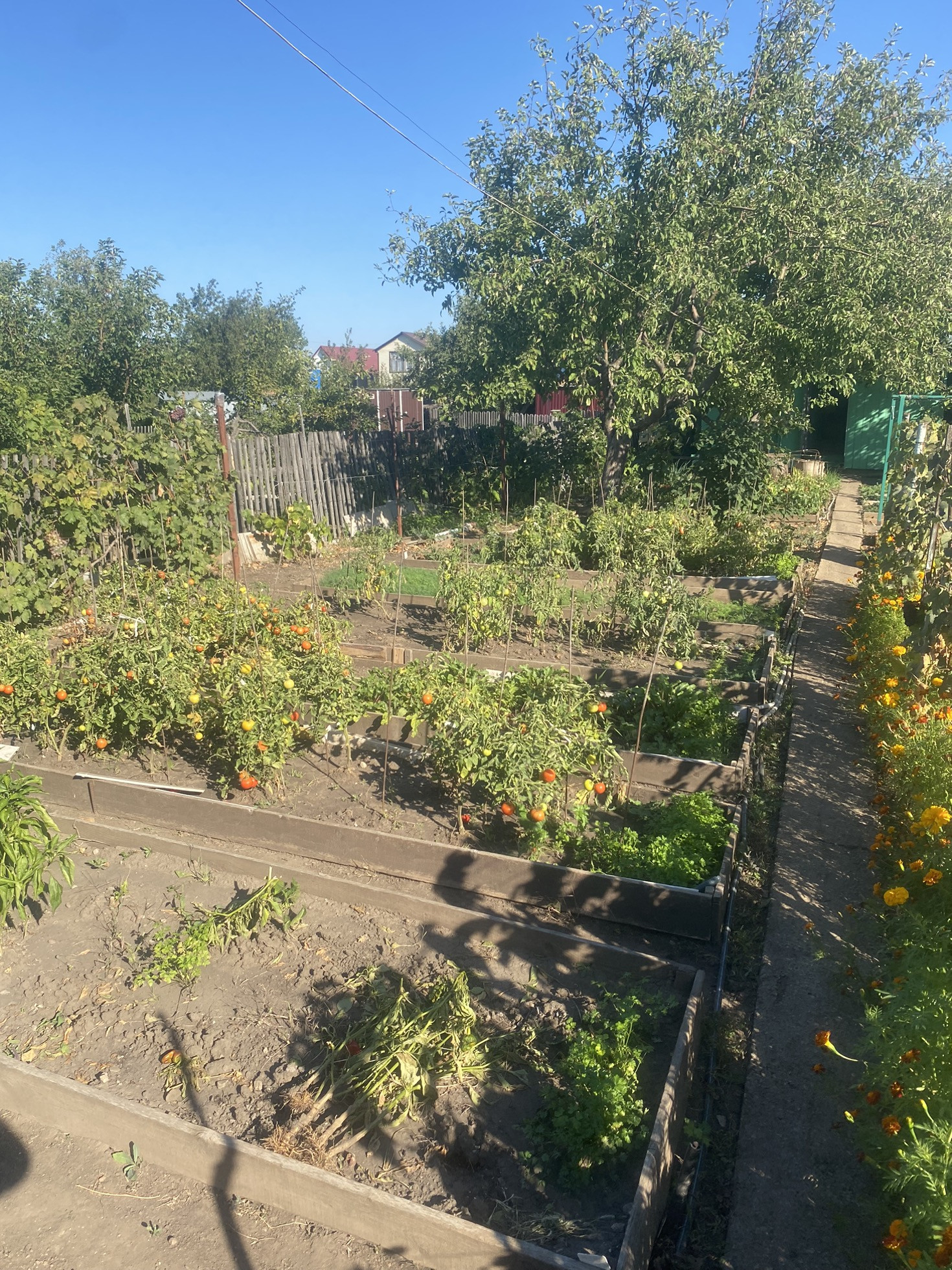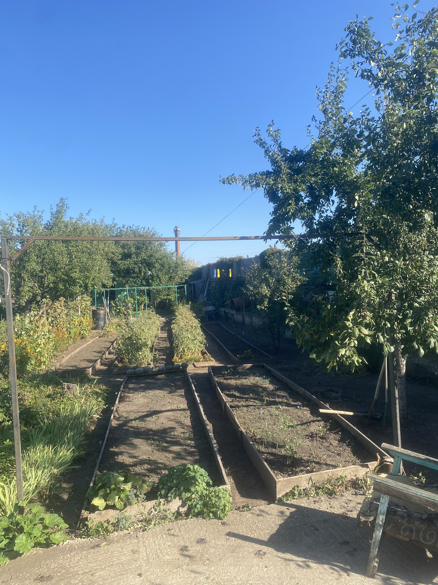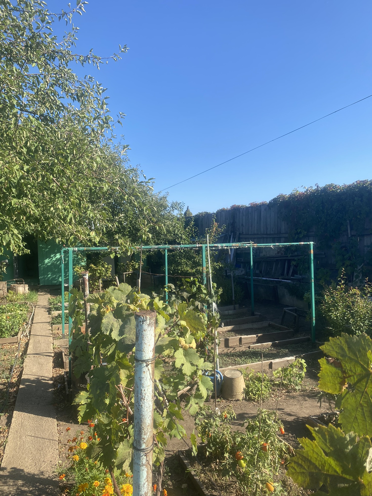 Участок ухоженный и чистый. Очень много всего посажено:3 яблони, 2 сливы, абрикос, виноград.