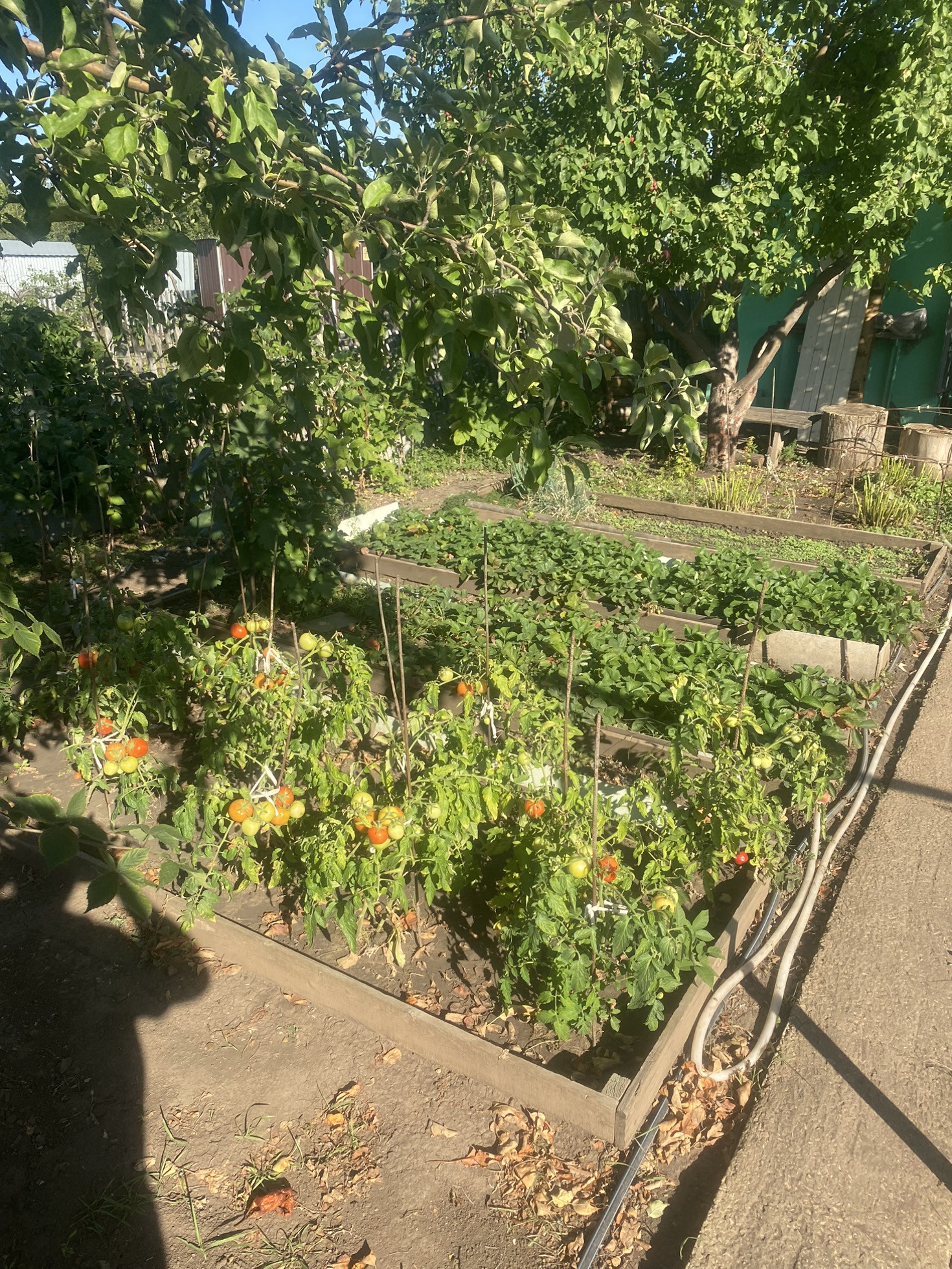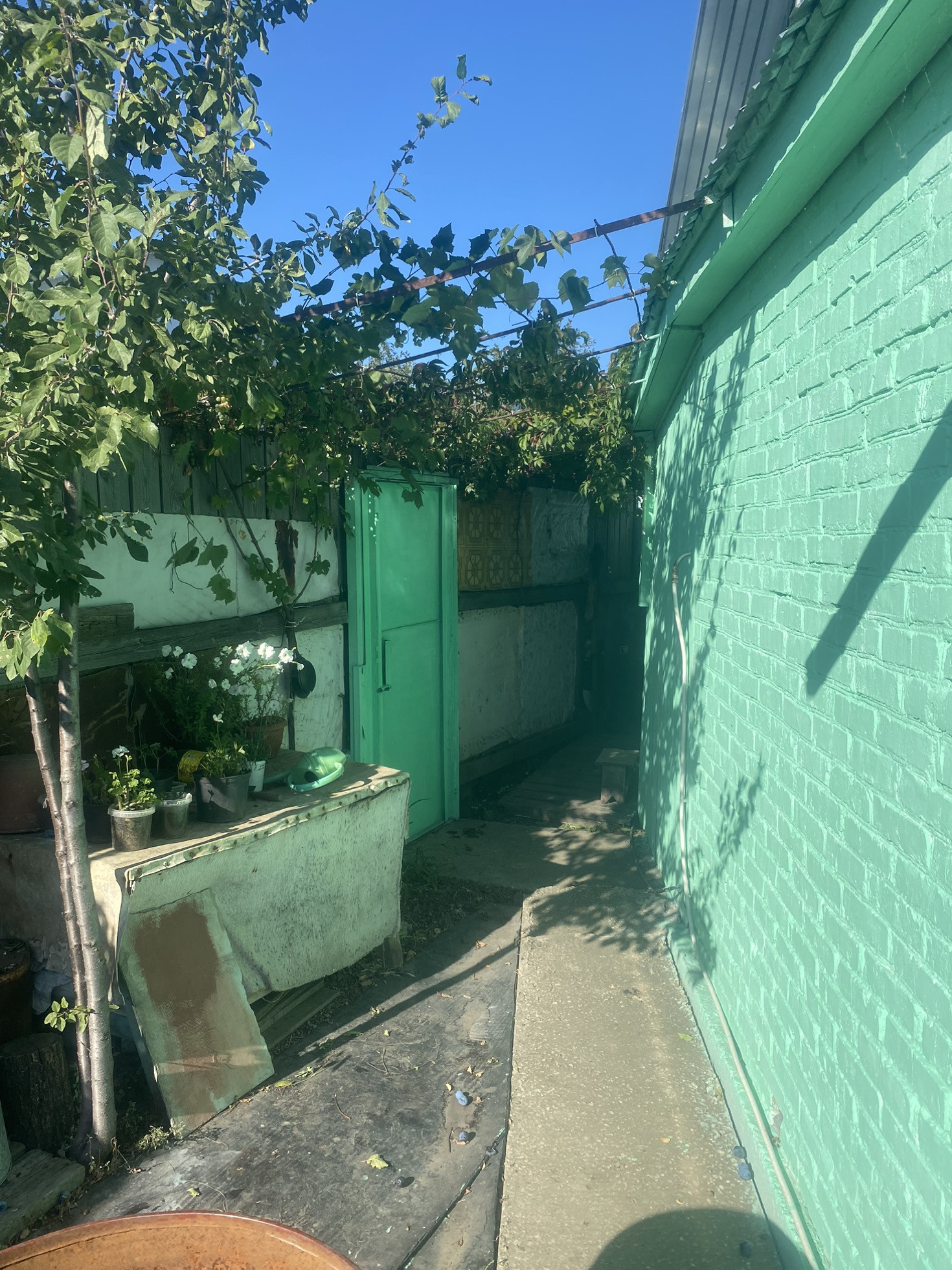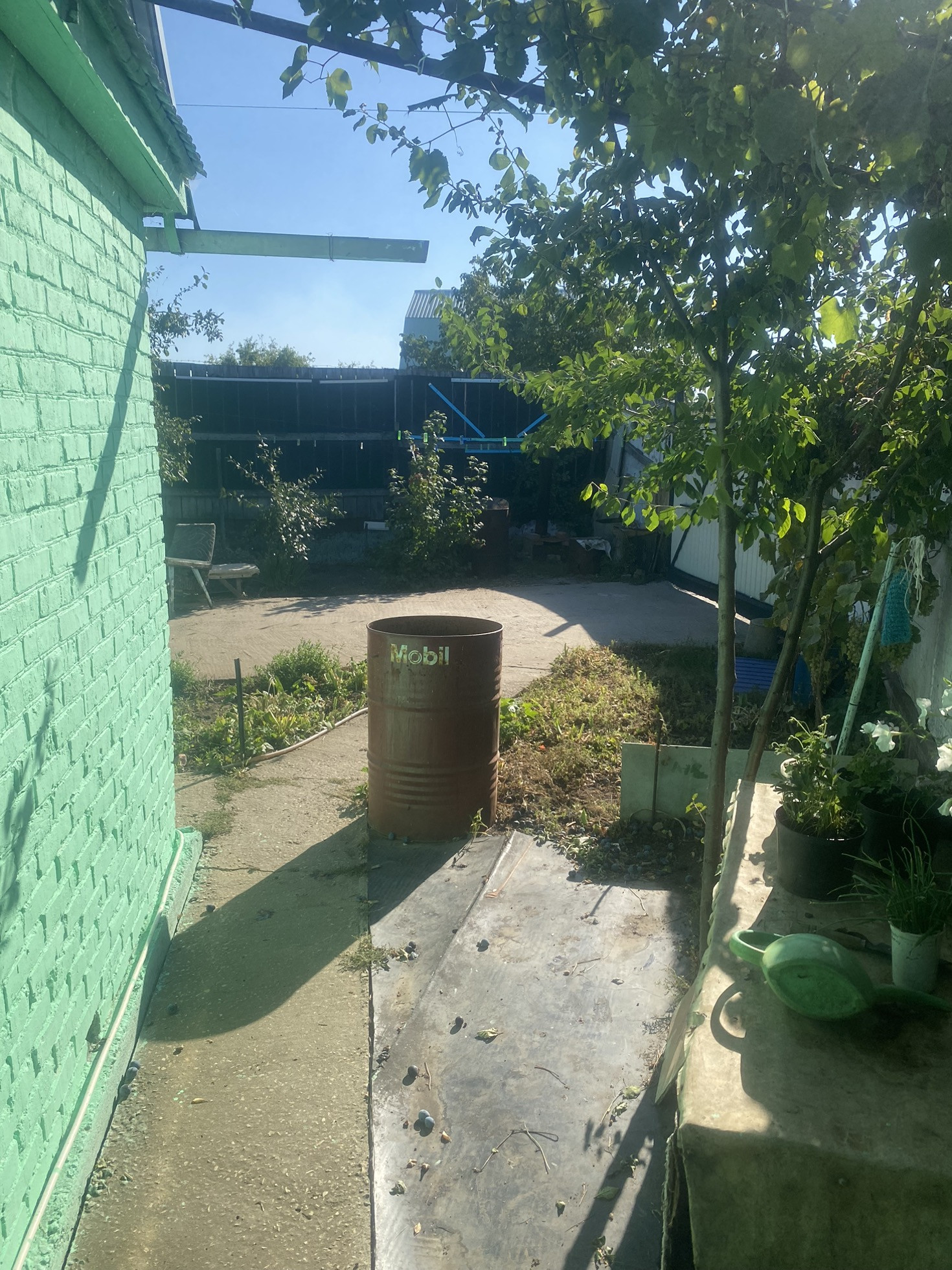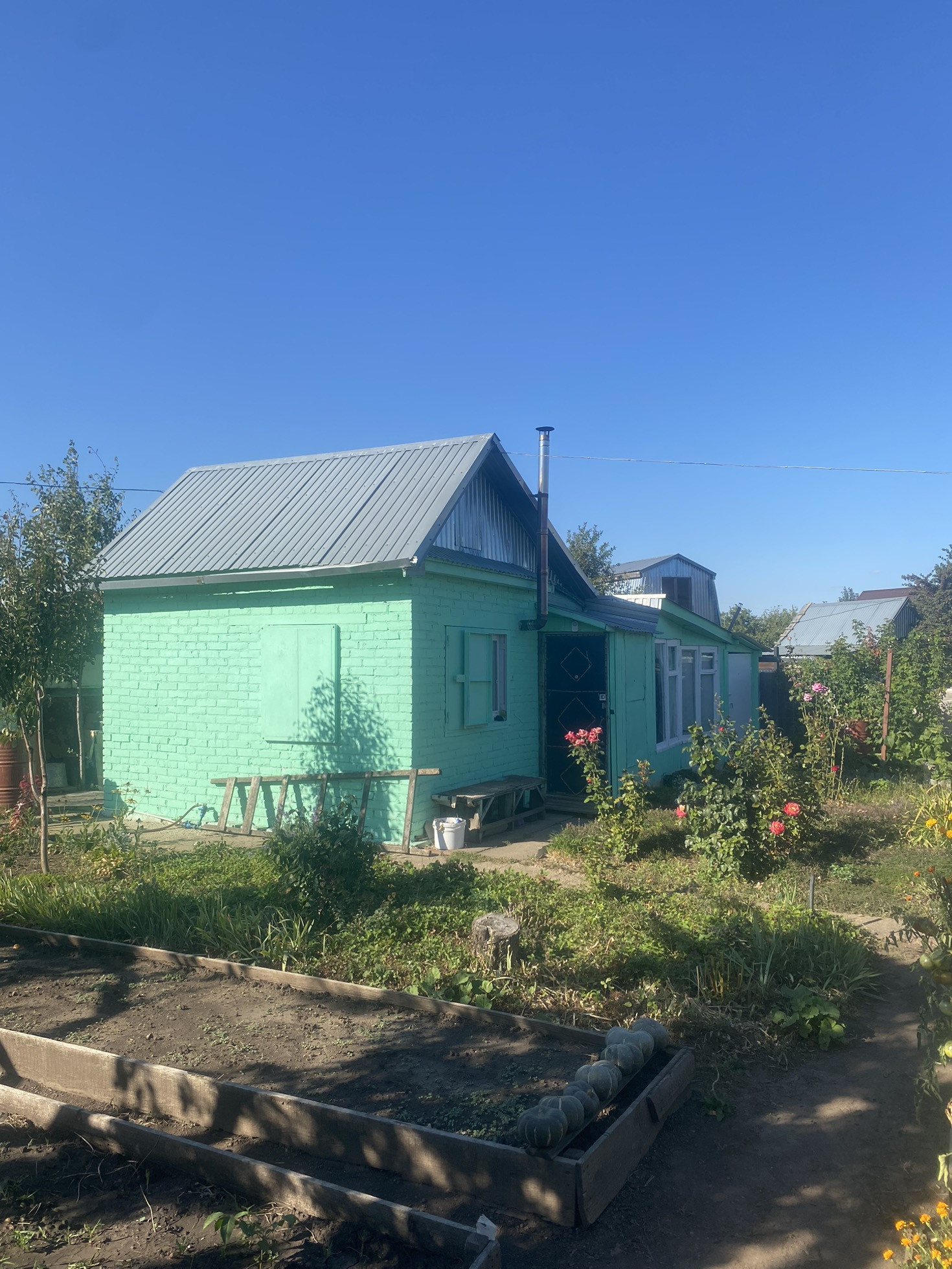 Участок ухоженный и чистый. Очень много всего посажено:3 яблони, 2 сливы, абрикос, виноград.