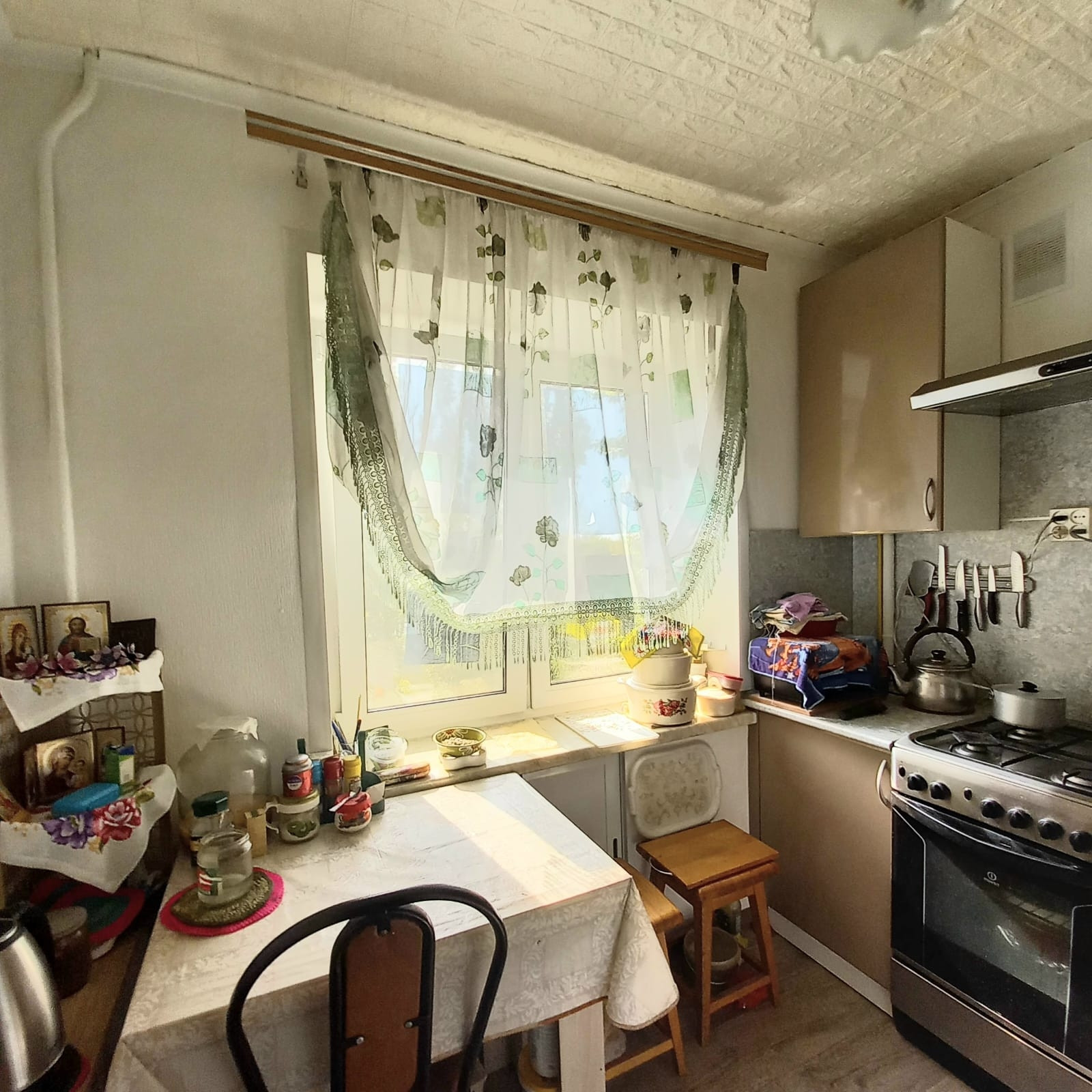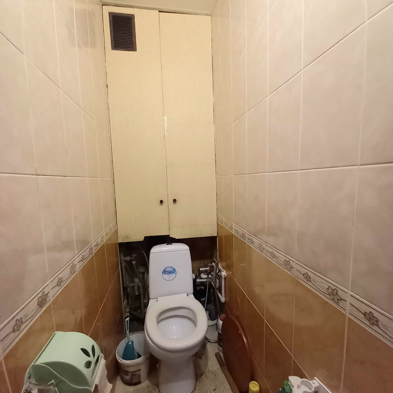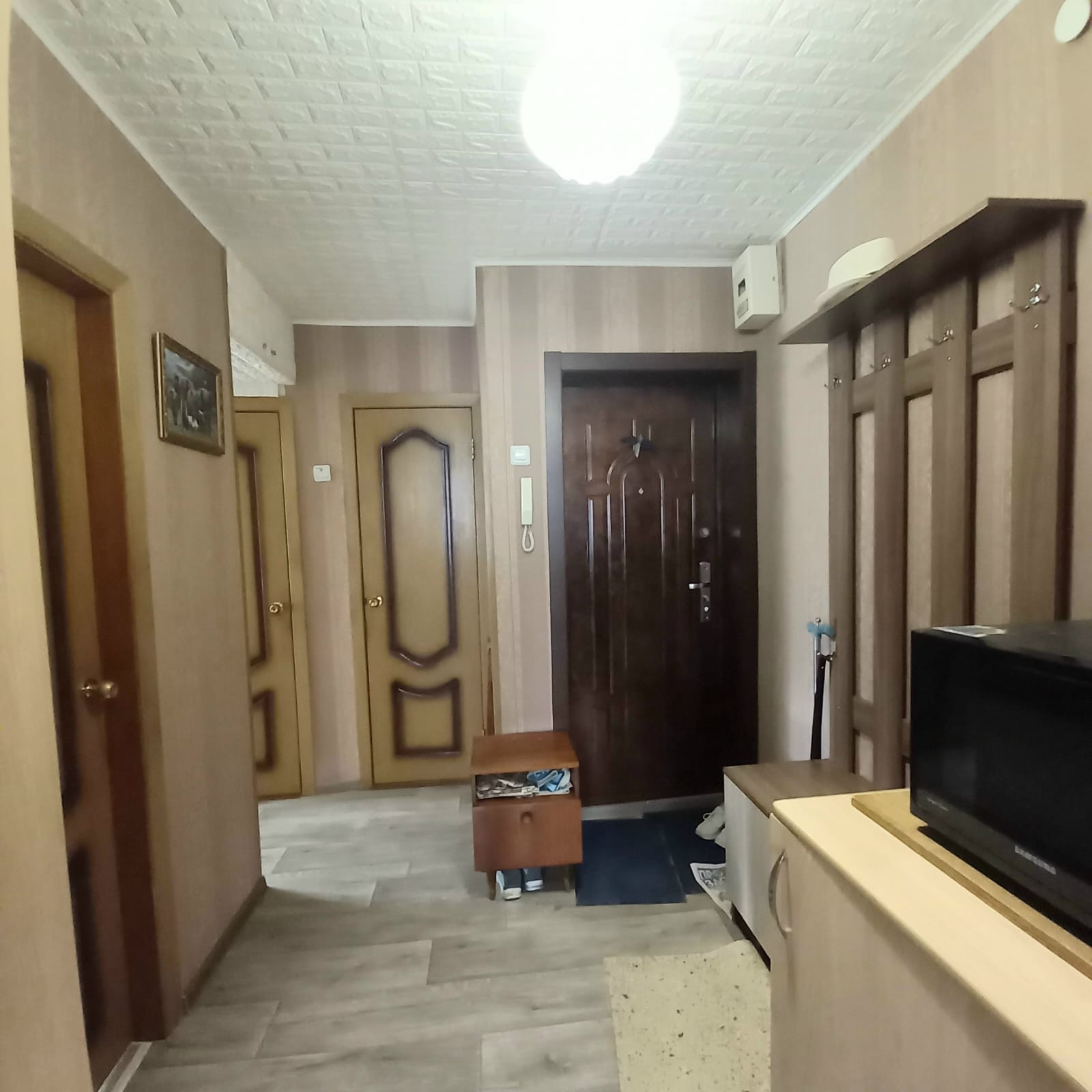 Косметический ремонт: окна пластиковые стеклопакеты, балкон застеклён раздвижной алюминиевой конструкцией и полностью с отделкой,  трубы пластиковые включая канализационную, счётчики, на полу коммерческий линолеум, современные межкомнатные и входная двери, с/у раздельный в кафеле,  хорошая сантехника.