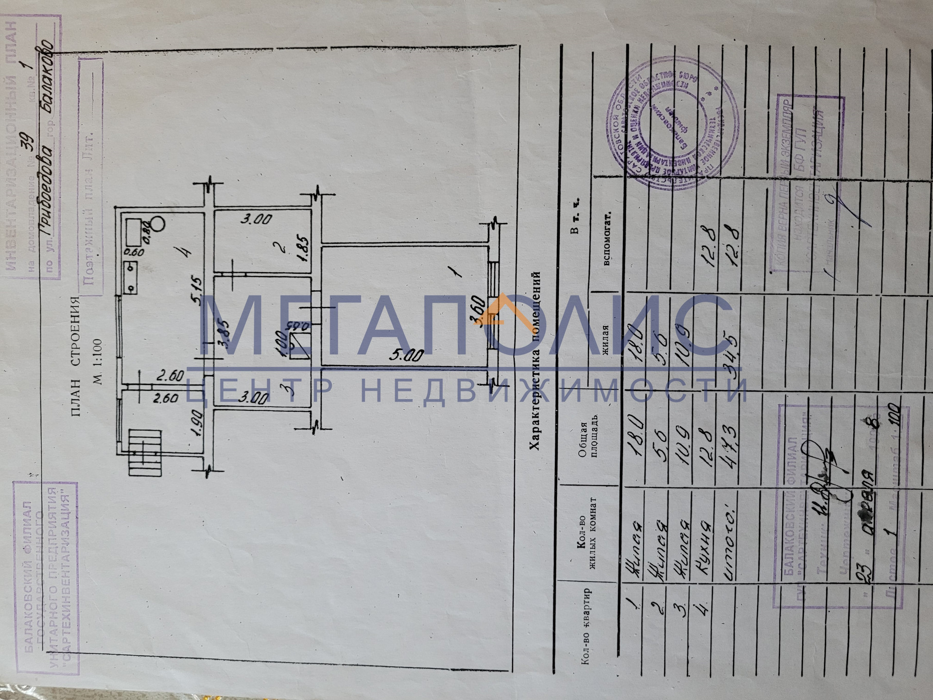 3-комнатная квартира, 51.8 м2, этаж 1 / 1, на продажу в Балаково, улица Грибоедова, 39