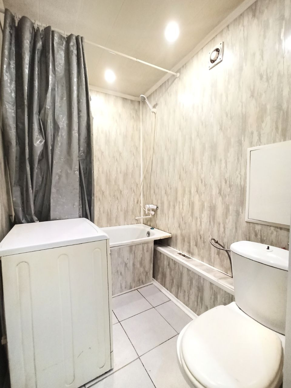 С/У совмещенный, облицовка стен выложена пластиковой конструкцией.