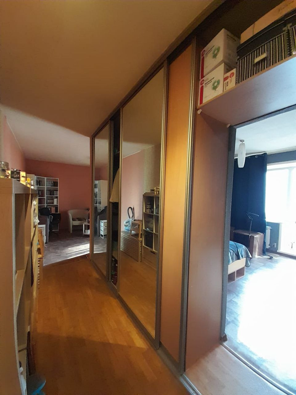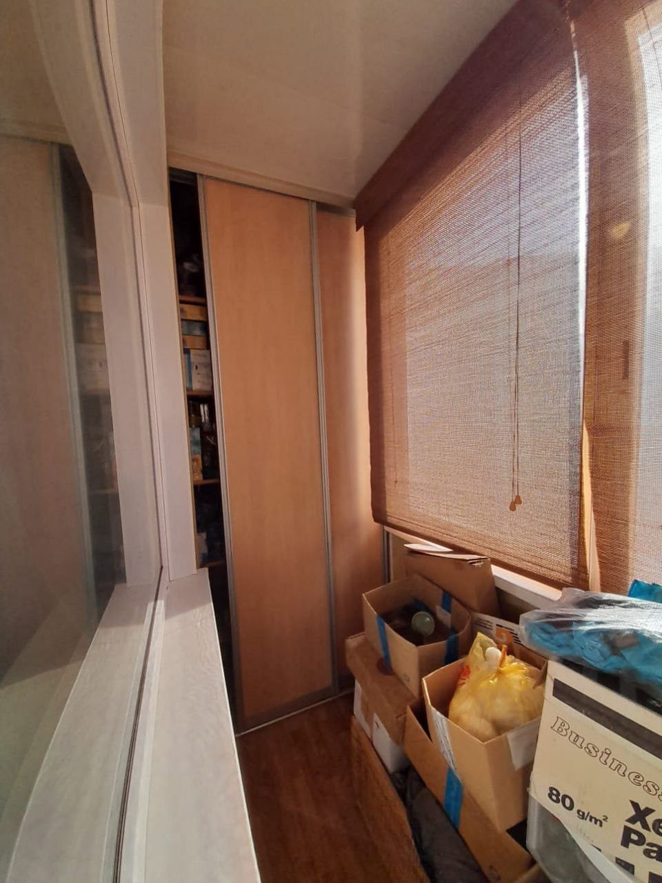В коридоре большой и вместительный встроенный шкаф-гардероб длинной 6,3м,глубиной 0,6м.На балконе тоже встроенный шкаф и место для хранения зимней одежды.