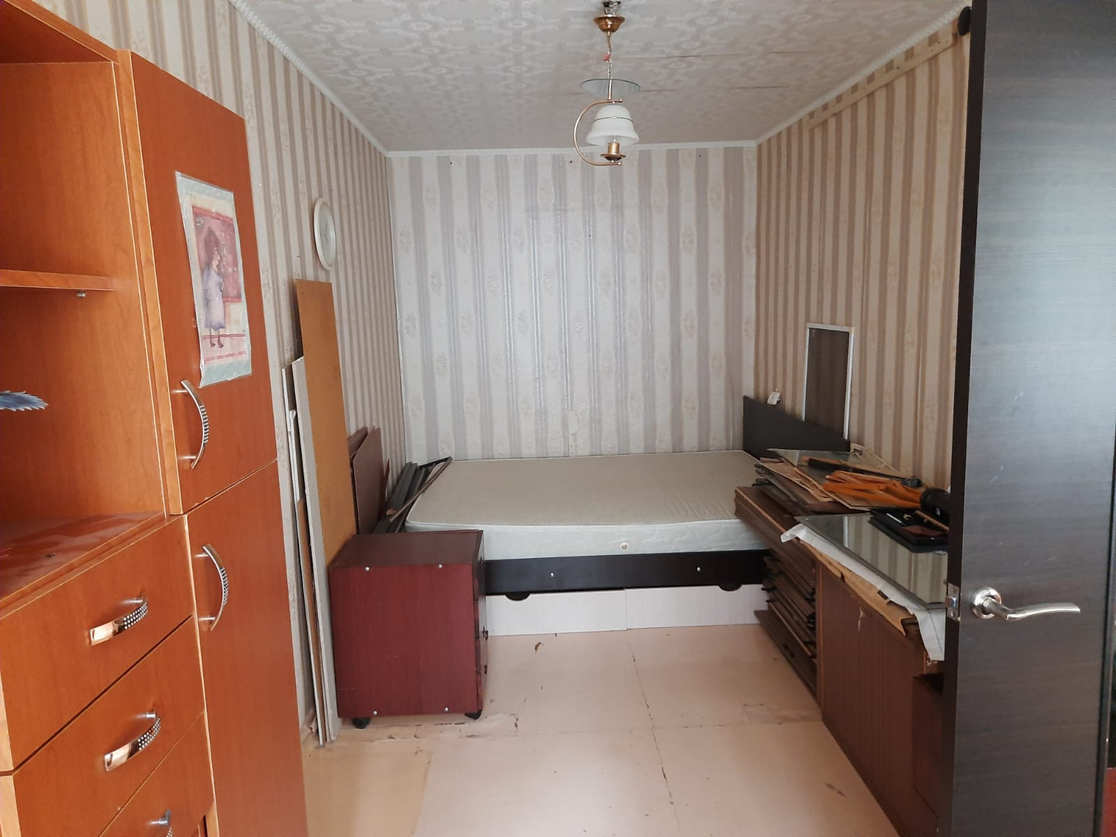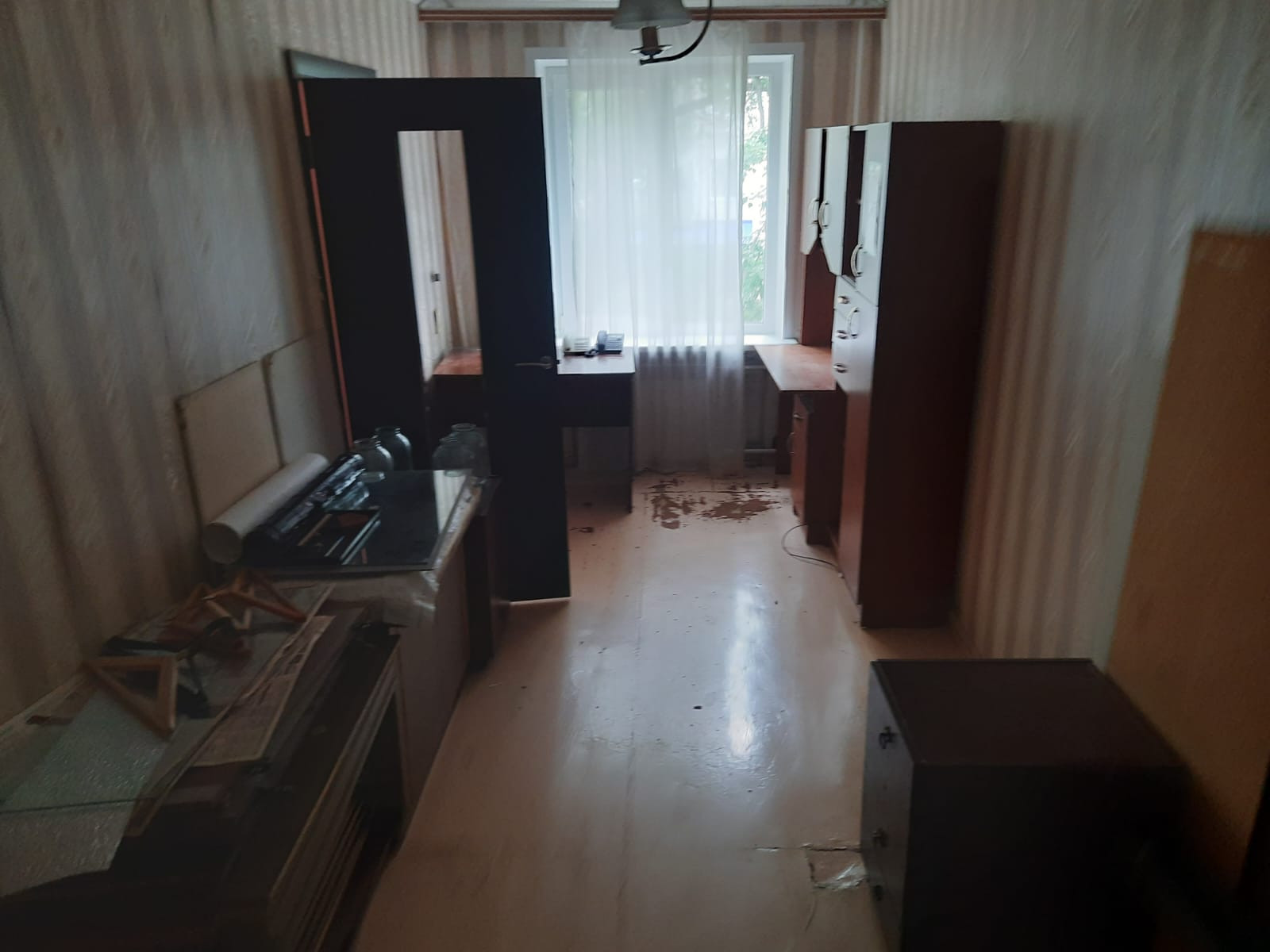 Вся мебель на фото останется новым хозяевам. В квартире проходной зал в одну из комнат.