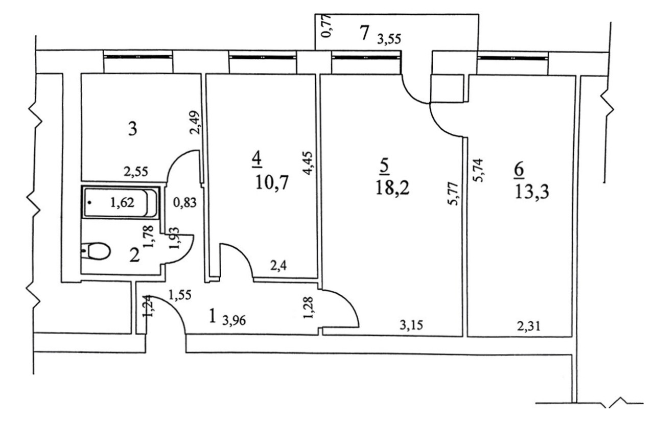 Балкон, лоджия 1 балкон